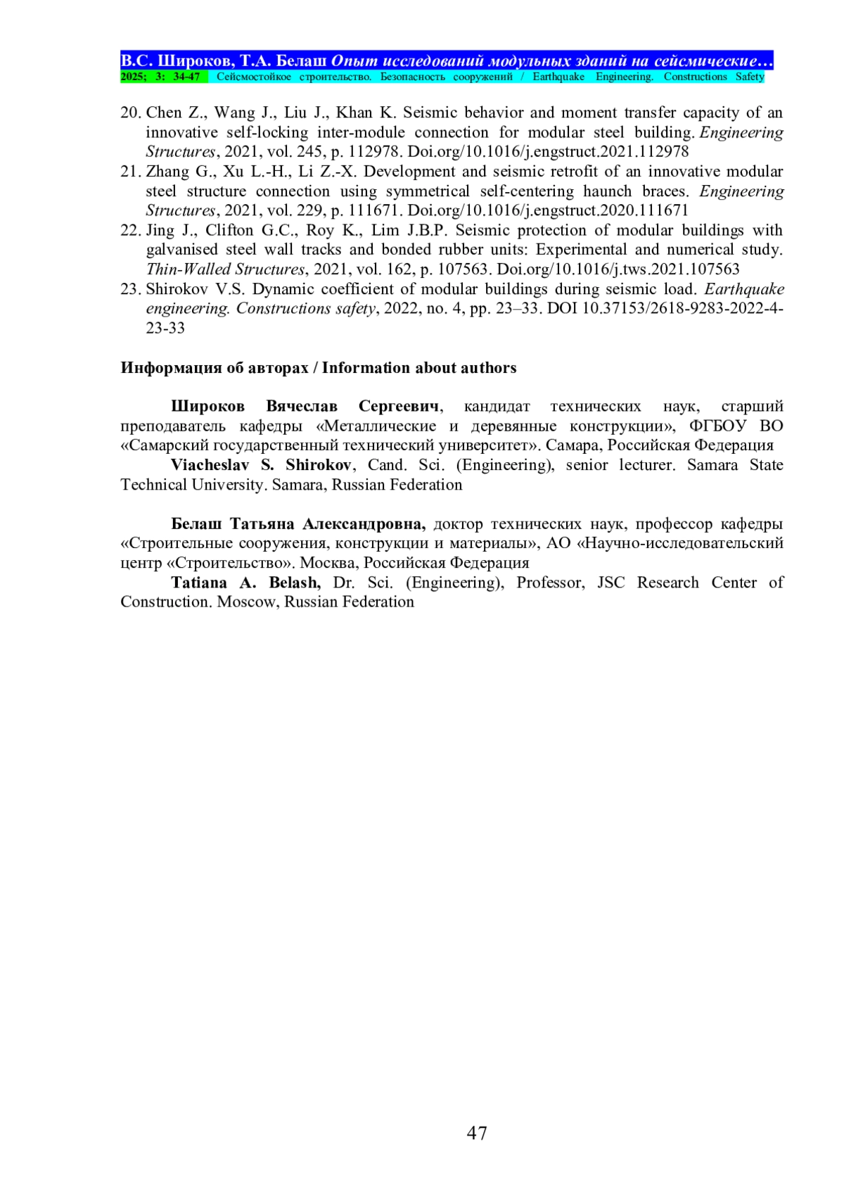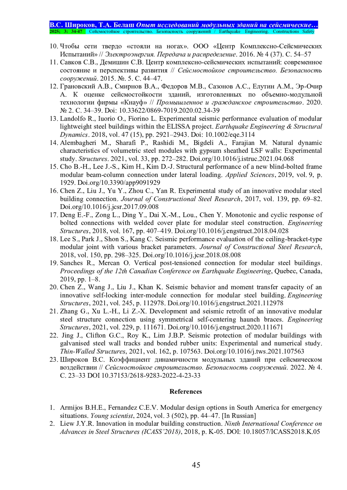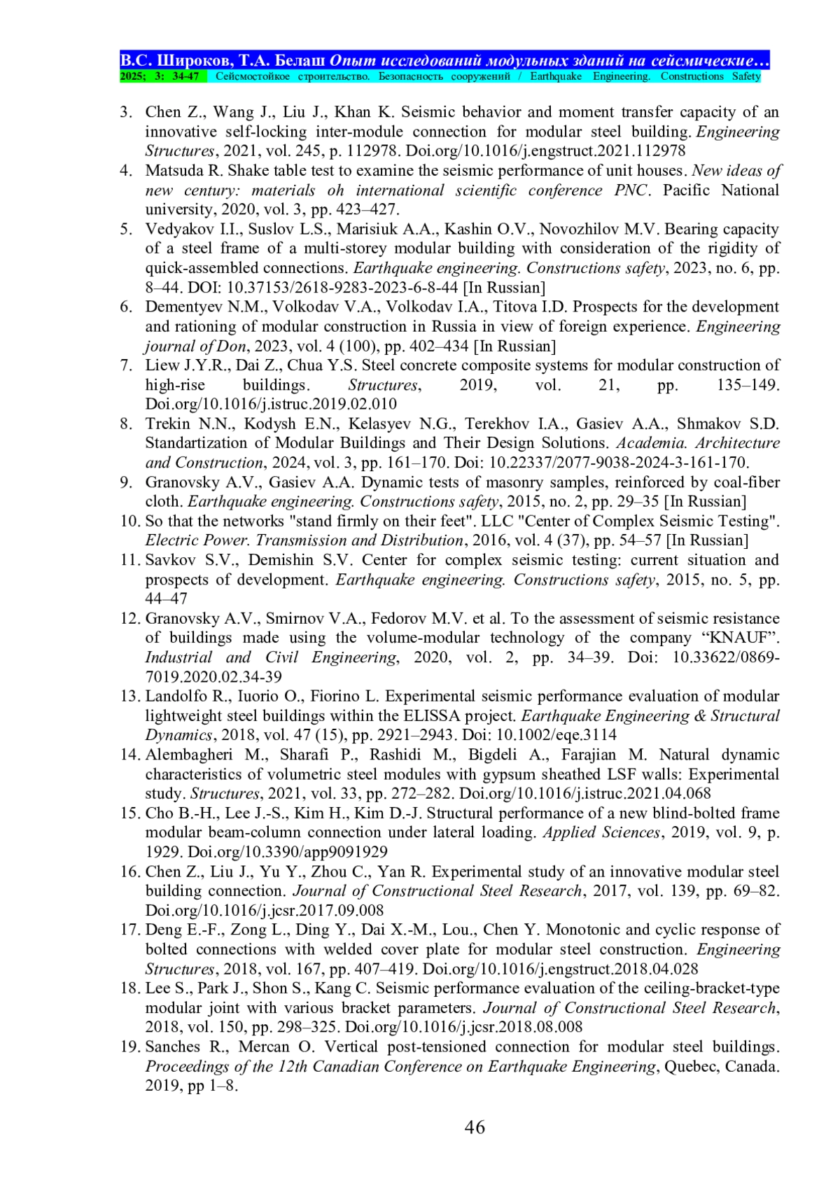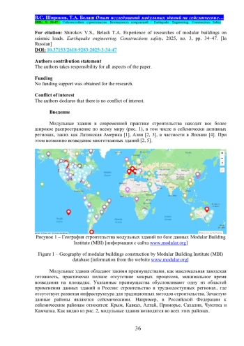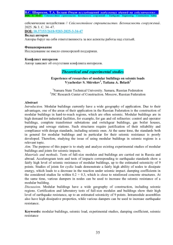ШИРОКОВ В. С., БЕЛАШ Т. А. ОПЫТ ИССЛЕДОВАНИЙ МОДУЛЬНЫХ ЗДАНИЙ НА СЕЙСМИЧЕСКИЕ ВОЗДЕЙСТВИЯ // СЕЙСМОСТОЙКОЕ СТРОИТЕЛЬСТВО. БЕЗОПАСНОСТЬ СООРУЖЕНИЙ. 2025. № 3