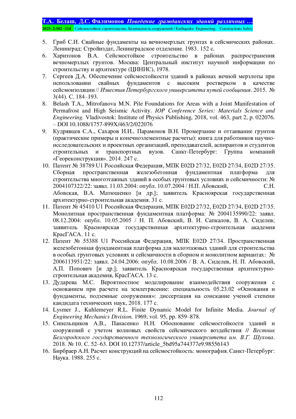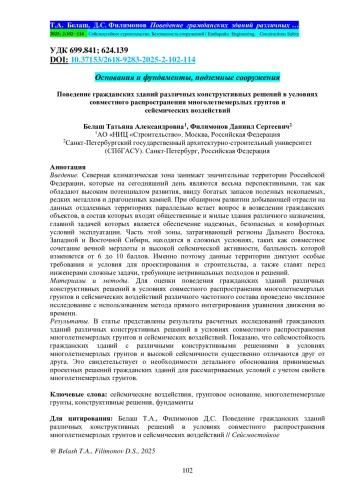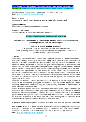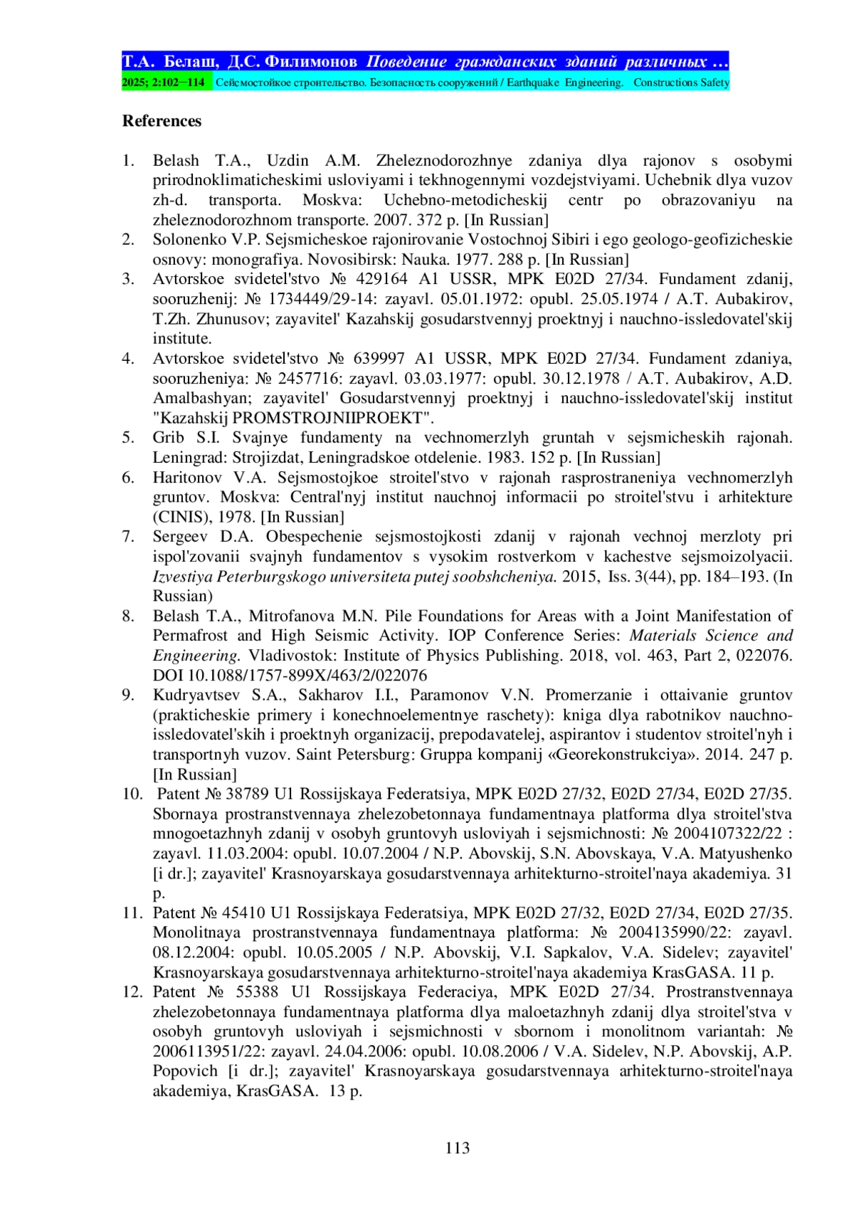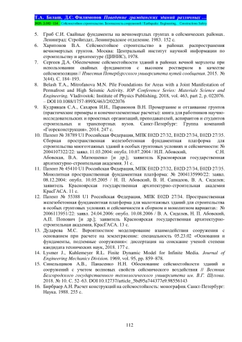 8. Belash T.A., Mitrofanova M.N. Pile Foundations for Areas with a Joint Manifestation of Permafrost and High Seismic Activity. IOP Conference Series: Materials Science and Engineering. Vladivostok: Institute of Physics Publishing, 2018, vol. 463, part 2, p. 022076. DOI: 10.1088/1757-899X/463/2/022076
