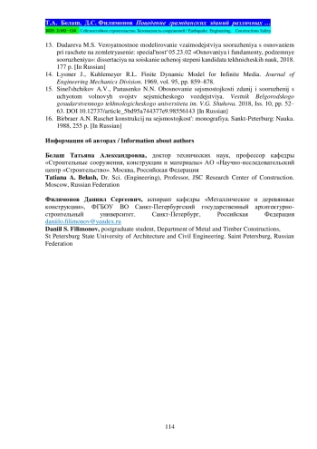 15. Синельщиков А.В., Панасенко Н.Н. Обоснование сейсмостойкости зданий и сооружений с учетом волновых свойств сейсмического воздействия // Вестник Белгородского государственного технологического университета им. В.Г. Шухова. 2018. № 10. С. 52-63. DOI: 10.12737/article_5bd95a744377e9.98556143