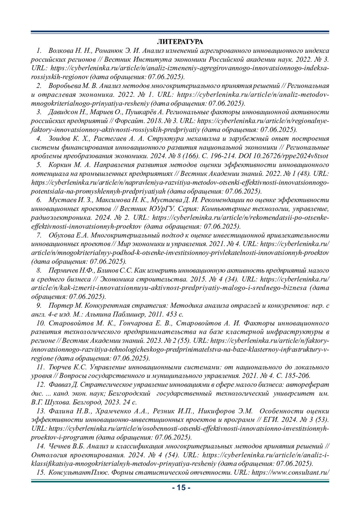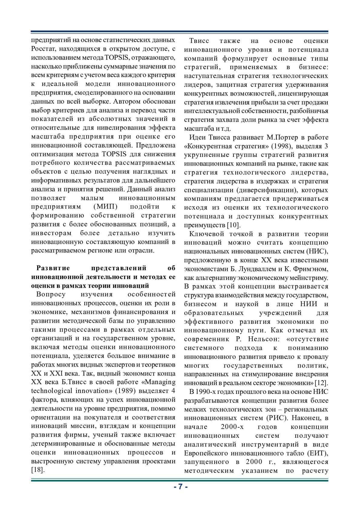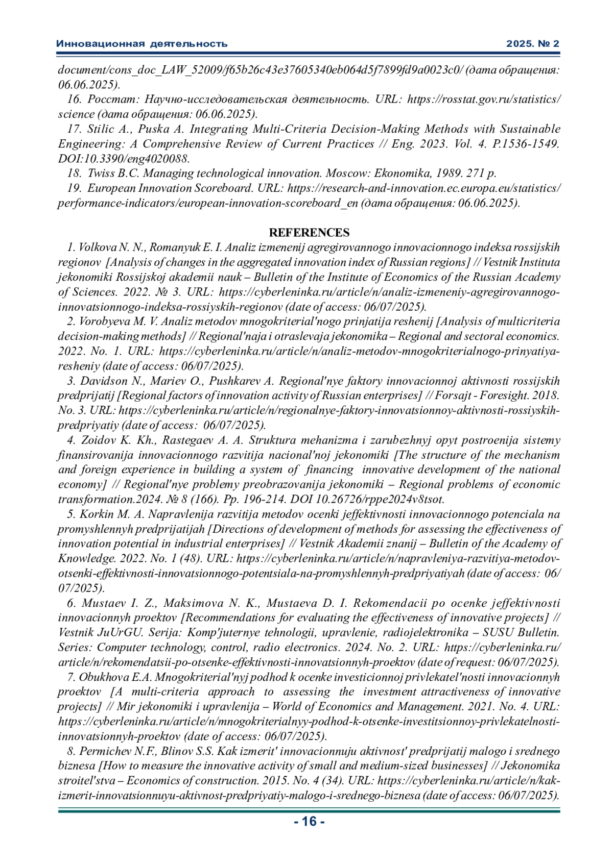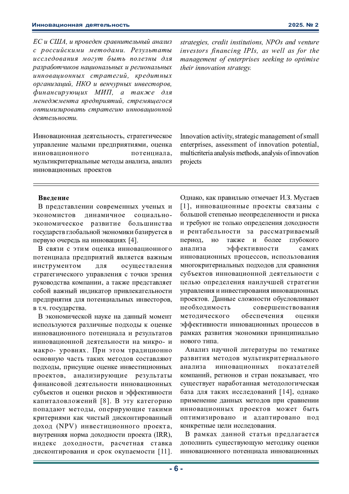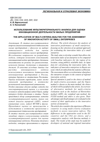 Статья: ИСПОЛЬЗОВАНИЕ МУЛЬТИКРИТЕРИАЛЬНОГО АНАЛИЗА ДЛЯ ОЦЕНКИ ИННОВАЦИОННОЙ ДЕЯТЕЛЬНОСТИ МАЛЫХ ПРЕДПРИЯТИЙ (2025)