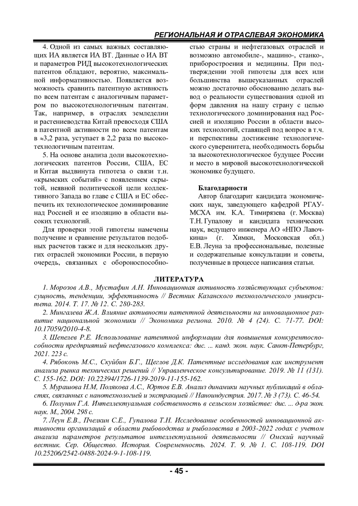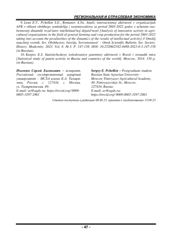 В статье обсуждаются сформированные за последние годы, начиная с 2003 года, тенденции оценивания инновационной активности (ИА) организаций в отраслях АПК, а именно, общего земледелия и растениеводства, рыбоводства и рыболовства, а также трех отраслей животноводства: сельскохозяйственных млекопитающих, птицеводства и пчеловодства. Обсуждаются две составляющие ИА: внутренняя и внешняя. Рассматриваются особенности недооценки в России внутренней ИА из-за недопатентования и основы методики ее уменьшения за счет учета трех групп патентов: стандартных, коммерциализированных и высокотехнологичных, а также диссертаций. Показано, что оценивание внешней ИА наиболее полно на основе группы двадцати стран технологических лидеров, близкой к «Большой двадцатке» G20. Обсуждается высокая информативность высокотехнологичных патентов. На основе их анализа выдвинута гипотеза о связи т. н. «крымских событий» с появлением скрытой, неявной политической цели «коллективного Запада» во главе с США и ЕС обеспечить их технологическое доминирование над Россией и ее изоляцию в области высоких технологий.