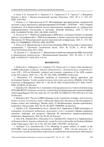 2. Шемякина Т. Ю. Информационное моделирование строительных объектов: особенности применения и развития // Вестник государственного университета управления. 2020. № 7. С. 89-95. DOI: 10.26425/1816-4277-2020-7-89-95 EDN: ZAZKTD