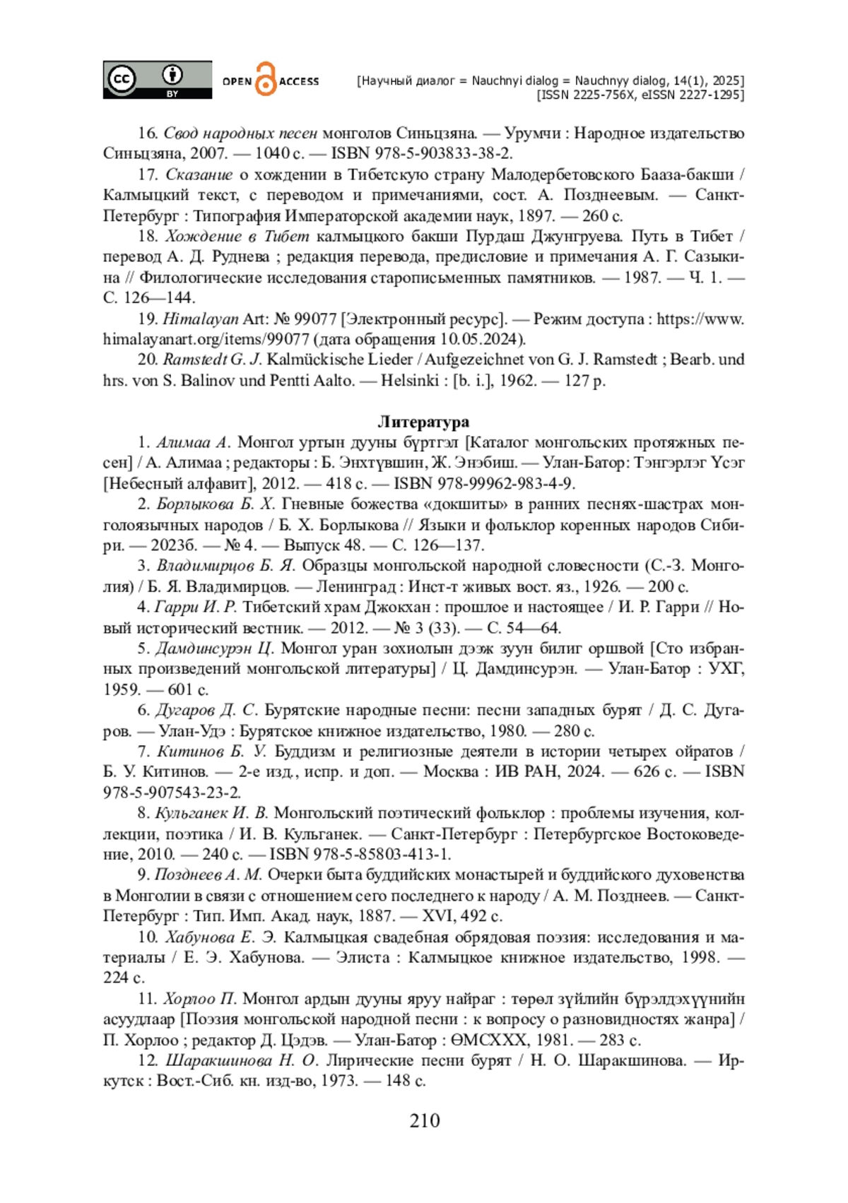 22. Борлыкова Б. Х. Гневные божества «докшиты» в ранних песнях-шастрах монголоязычных народов / Б. Х. Борлыкова // Языки и фольклор коренных народов Сиби-ри. - 2023б. - № 4. - Выпуск 48. - С. 126-137.