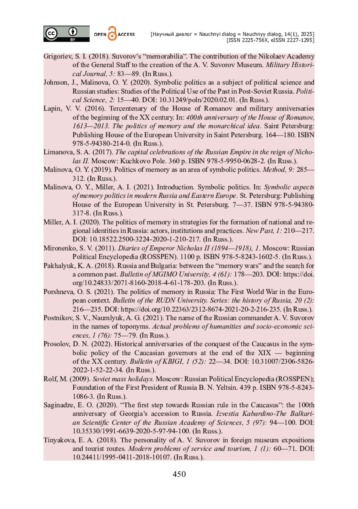 35. Поршнева О. С. Политика памяти в России: Первая мировая война в европейском контексте / О. С. Поршнева // Вестник РУДН. Серия : история России. - 2021. - № 20 (2). - С. 216-235. - https://doi.org/10.22363/2312-8674-2021-20-2-216-235.