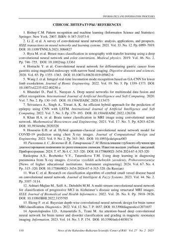 11. Wan C. et al. Research on classification algorithm of cerebral small vessel disease based on convolutional neural network. Journal of Intelligent & Fuzzy Systems. 2023. Vol. 44. No. 2. Pp. 3107-3114. EDN: JHXDPL