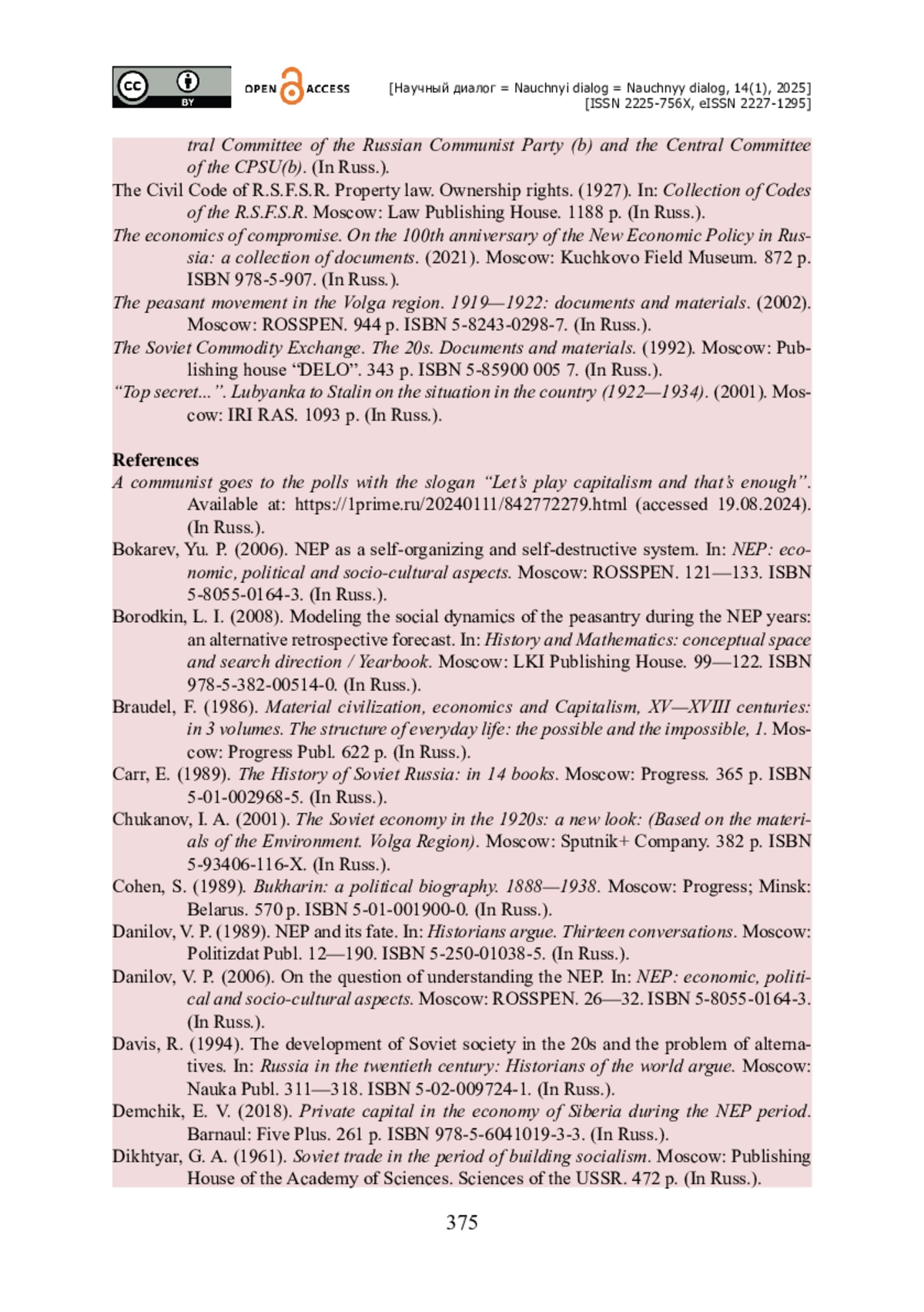 51. Мухин М. Ю. Сто лет изучения нэпа. Время подводить итоги? = Century of Study of the New Economic Policy. Time to Take Stock? / М. Мухин // Российская история. - 2020. - № 5. - С. 3-14. - https://doi.org/10.31857/S086956870012177-5.