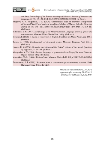35. Шигуров В. В. Собственно грамматический тип ступенчатой транспозиции субстантивной словоформы рядом в подкласс наречий образа действия / В. В. Шигуров, Т. А. Шигурова // Научный диалог. - 2024. - Т. 13. - № 2. - С. 176-197. - https://doi.org/10.24224/2227-1295-2024-13-2-176-197.