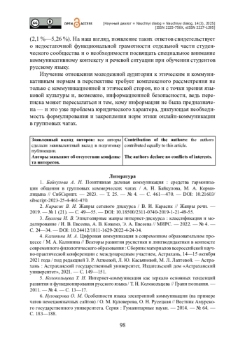 Статья: Отношение к этическим и коммуникативным нормам в студенческих групповых чатах (по результатам социолингвистического опроса) (2025)