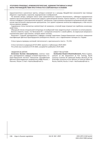 Teuvazhukov A.H. Some problems of detection and prevention of crimes committed in cyberspace // Journal of Applied Research. 2023. No. 4. pp. 152-155.