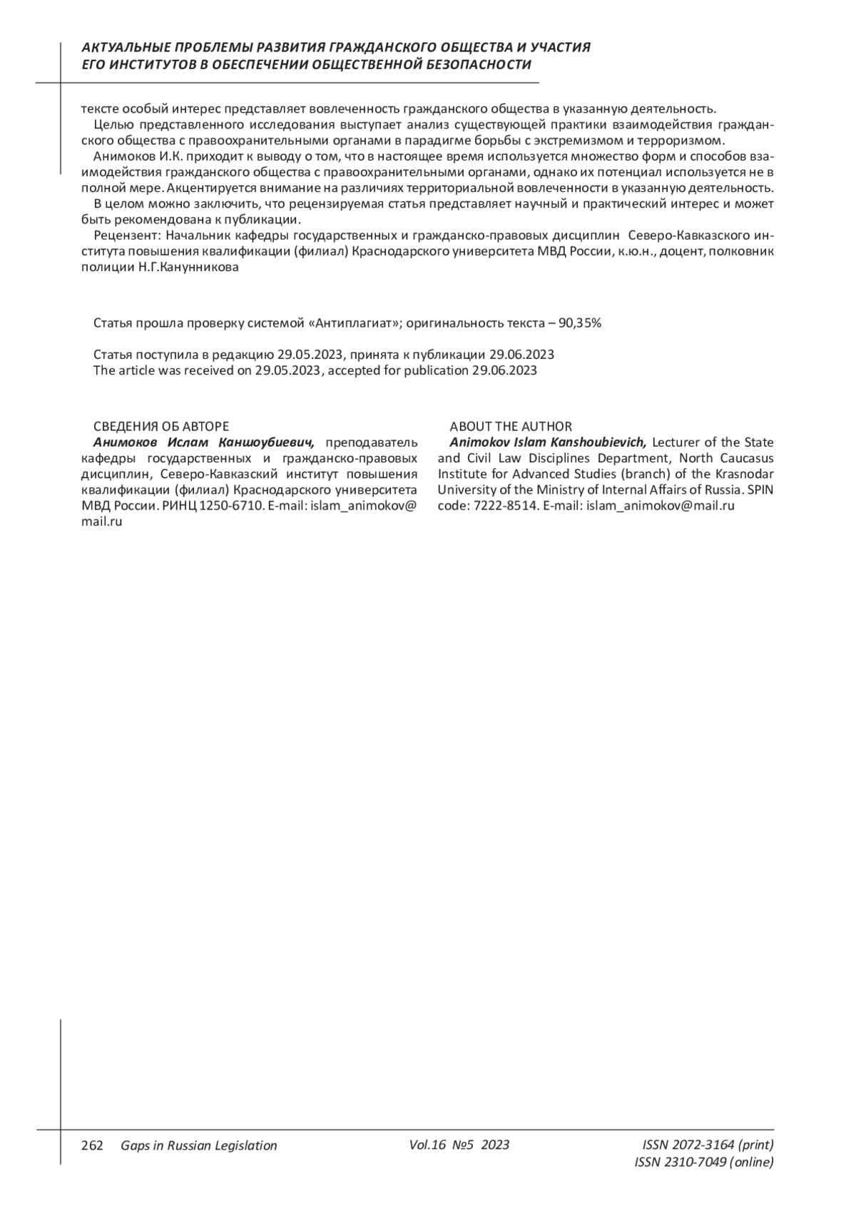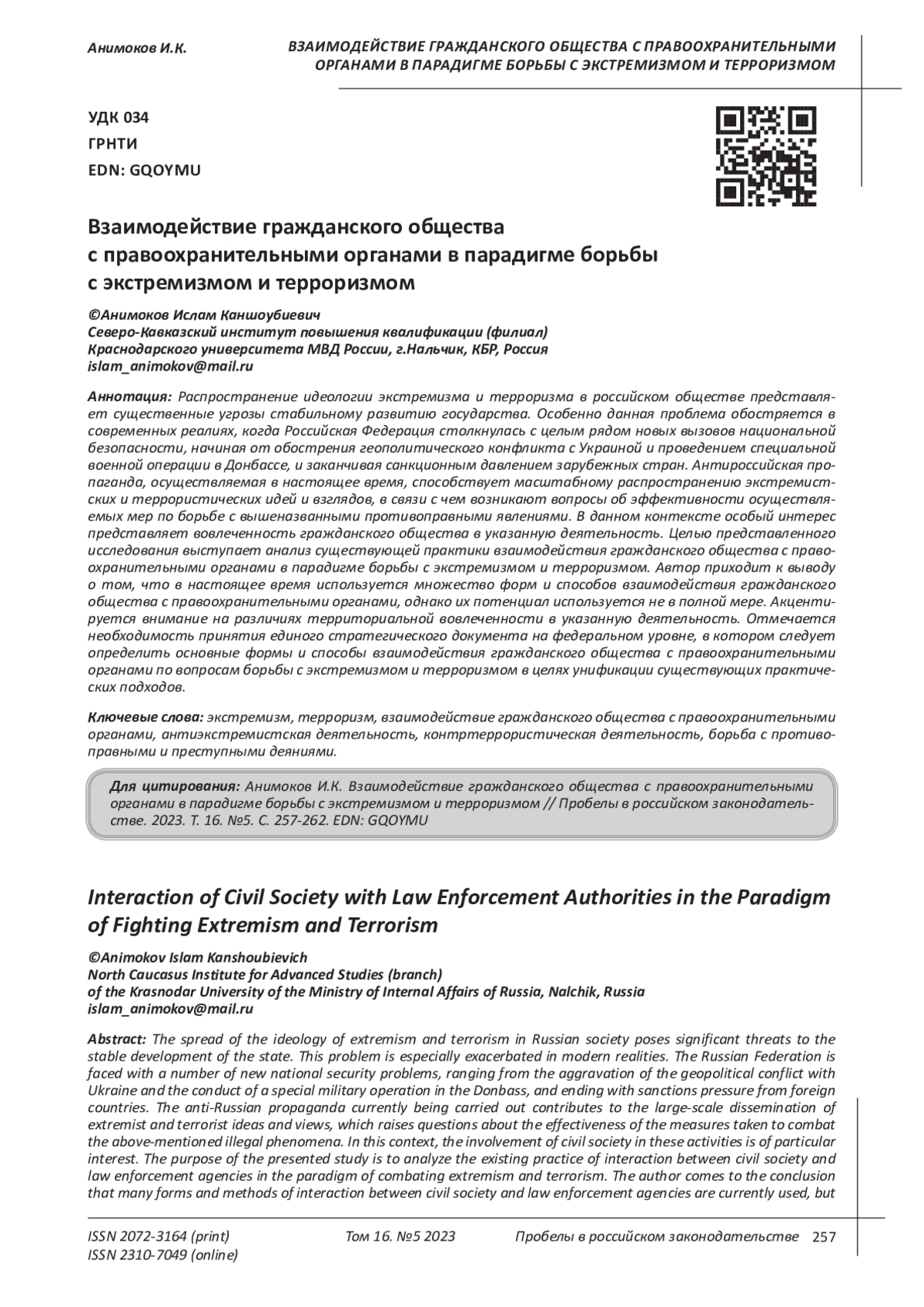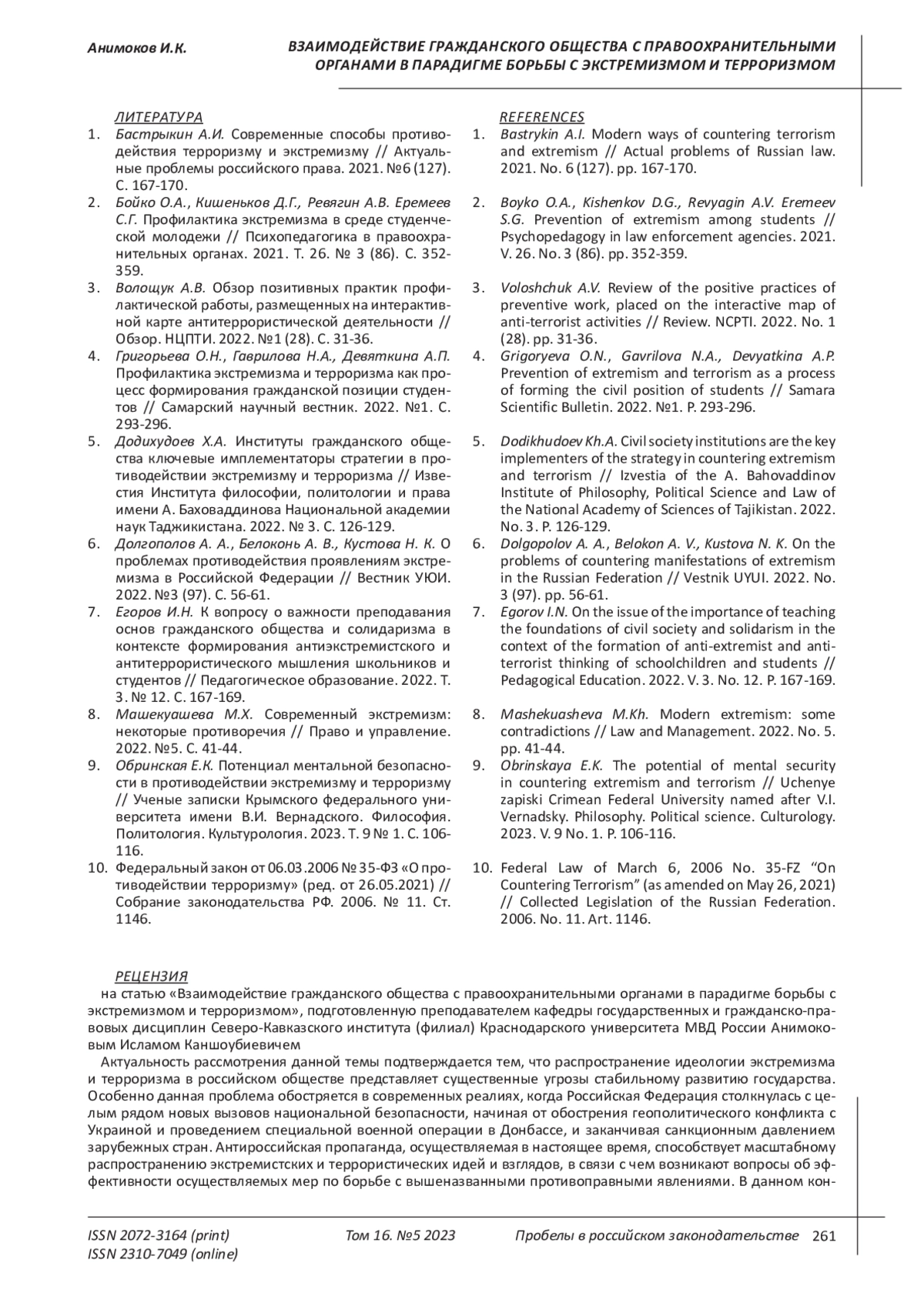 8. Машекуашева М.Х. Современный экстремизм: некоторые противоречия // Право и управление. 2022. №5. С. 41-44. EDN: NTOZTL