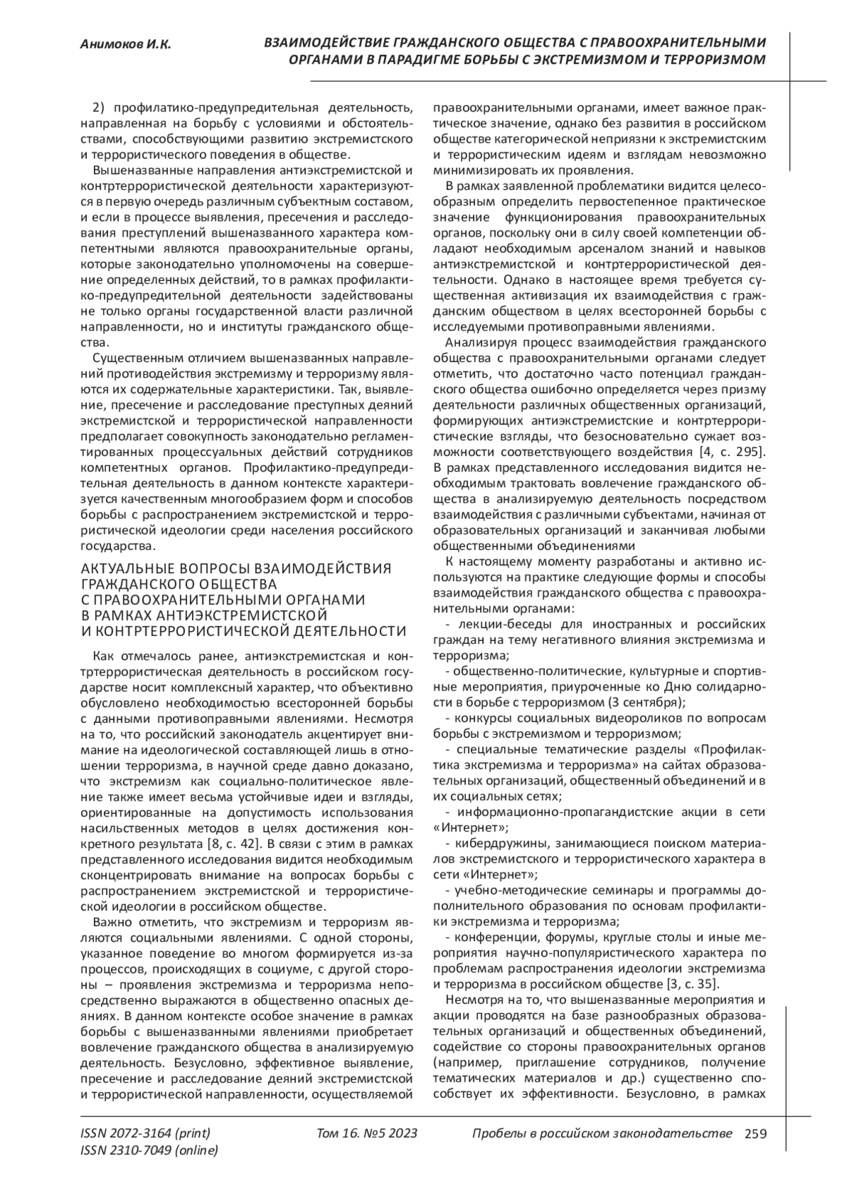 6. Долгополов А. А., Белоконь А. В., Кустова Н. К. О проблемах противодействия проявлениям экстремизма в Российской Федерации // Вестник УЮИ. 2022. №3 (97). С. 56-61. EDN: OVUOHP