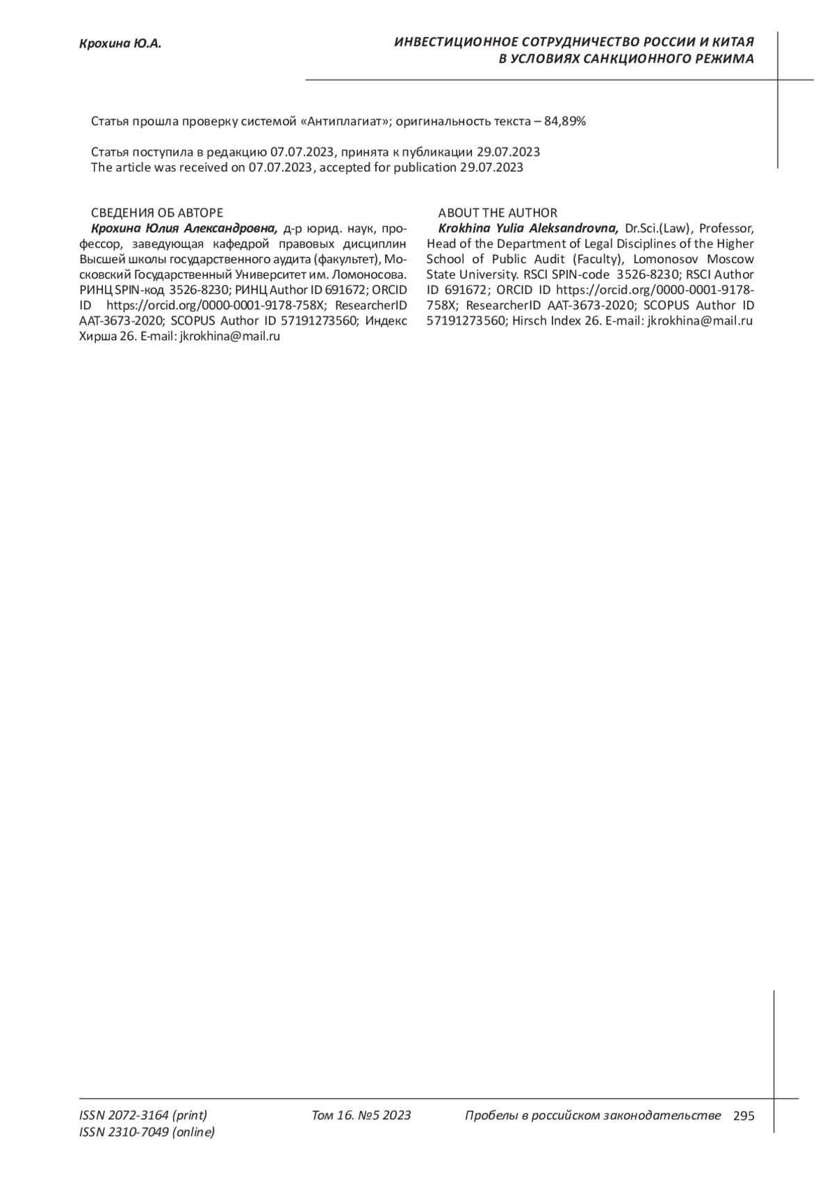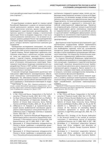 5. Бризицкая А. В. Инвестиционное сотрудничество России и Китая: проблемы и направления развития // Российский внешнеэкономический вестник. 2023. № 1. EDN: HJEXXP