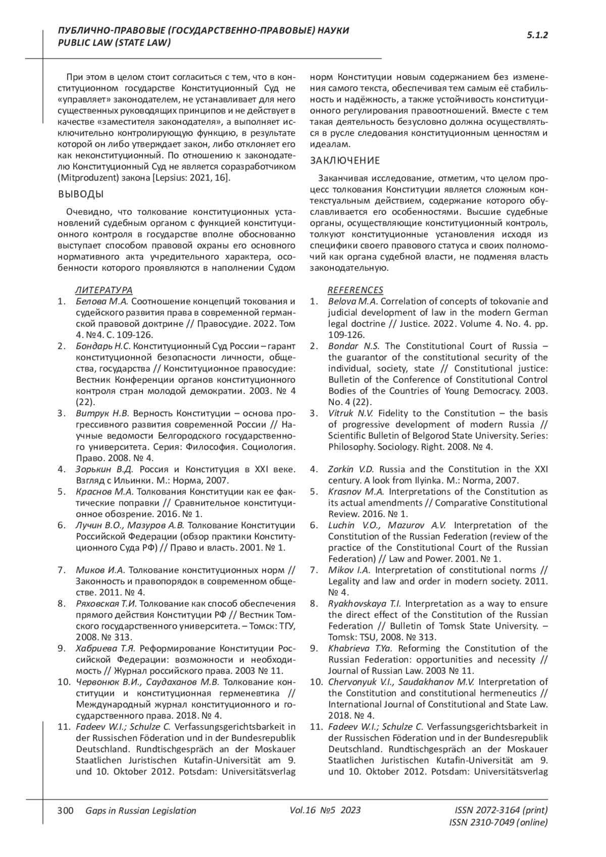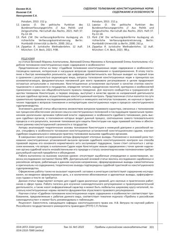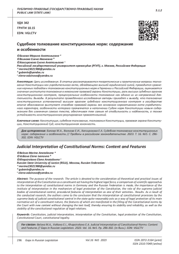 10. Червонюк В.И., Саудаханов М.В. Толкование конституции и конституционная герменевтика // Международный журнал конституционного и государственного права. 2018. № 4. EDN: TTRSJP