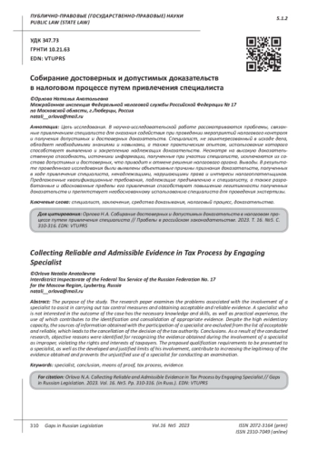 2. Глазунова И.В. Специфика доказательств в налоговом процессе // Правоприменение. 2019. Т. 3, № 4. С. 63-74. EDN: FFFZYF