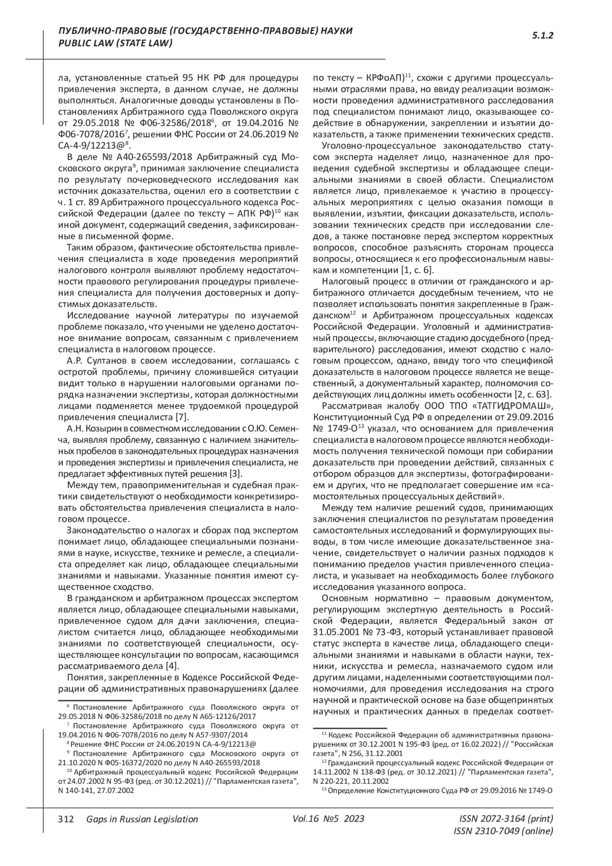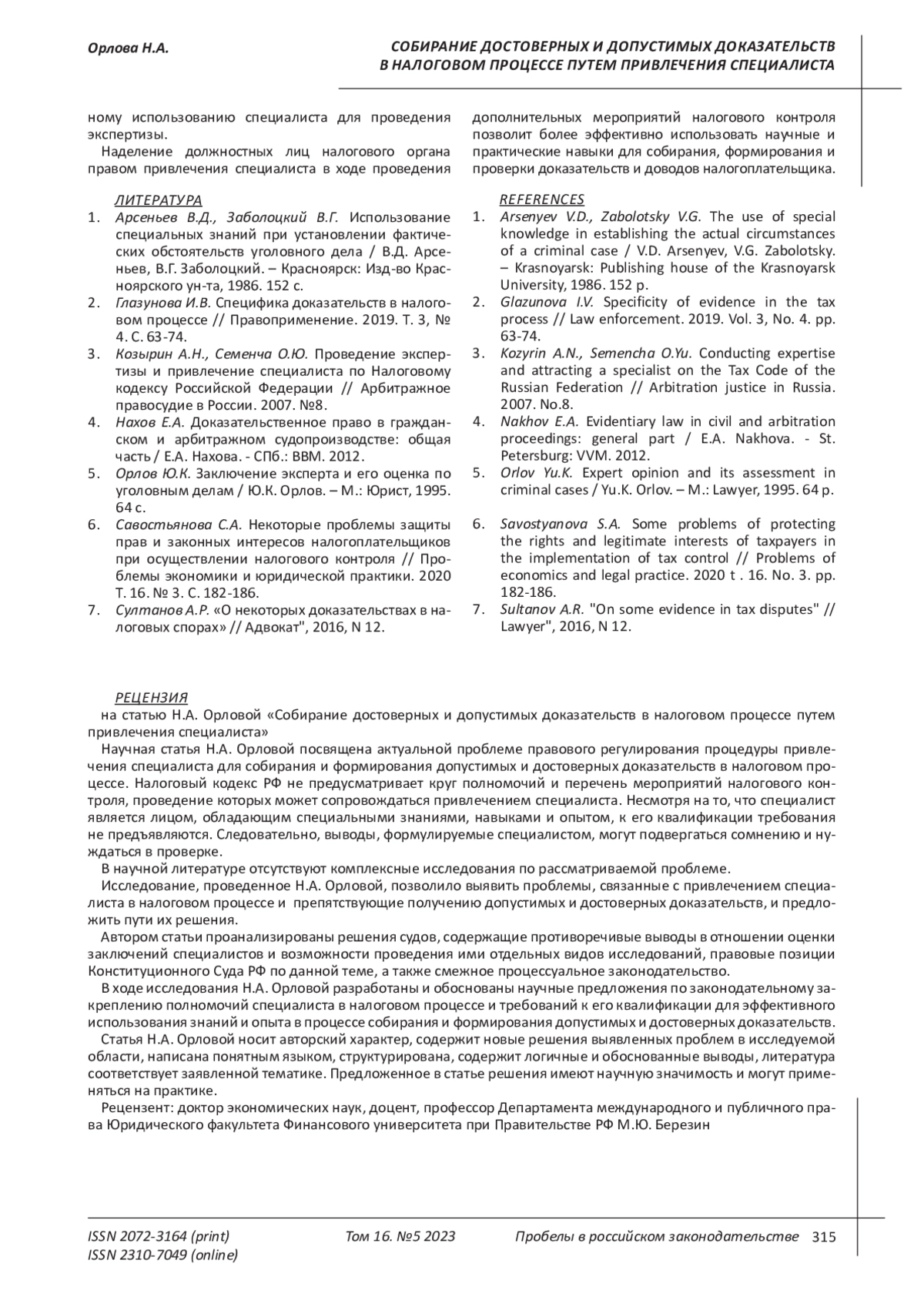 7. Султанов А.Р. “О некоторых доказательствах в налоговых спорах” // Адвокат“, 2016, N 12.