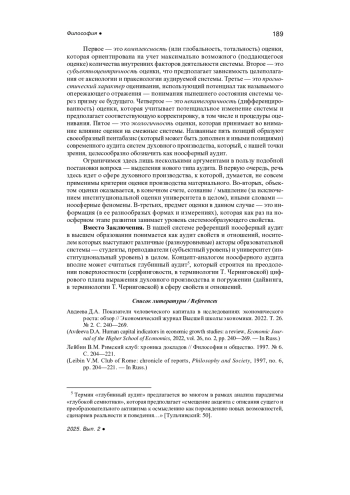 1. Авдеева Д.А. Показатели человеческого капитала в исследованиях экономического роста: обзор // Экономический журнал Высшей школы экономики. 2022. Т. 26. № 2. С. 240-269. EDN: SUZZLO