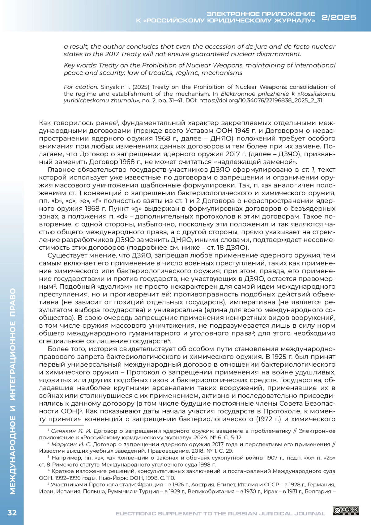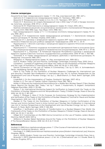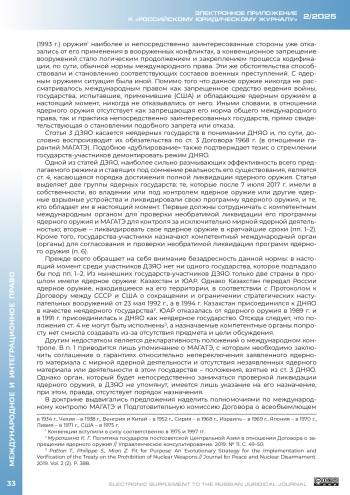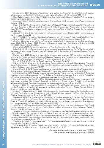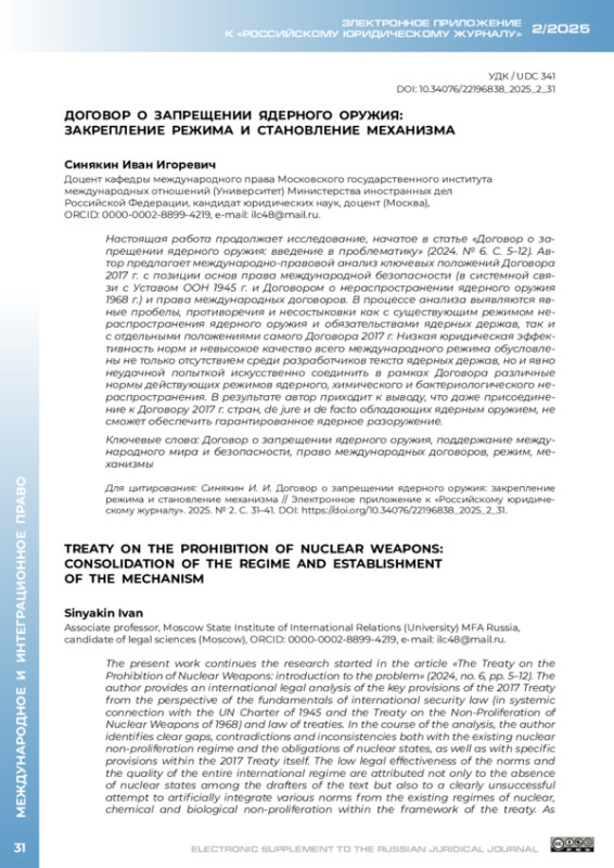 СИНЯКИН И. И. ДОГОВОР О ЗАПРЕЩЕНИИ ЯДЕРНОГО ОРУЖИЯ: ЗАКРЕПЛЕНИЕ РЕЖИМА И СТАНОВЛЕНИЕ МЕХАНИЗМА // ЭЛЕКТРОННОЕ ПРИЛОЖЕНИЕ К РОССИЙСКОМУ ЮРИДИЧЕСКОМУ ЖУРНАЛУ. 2025. № 2