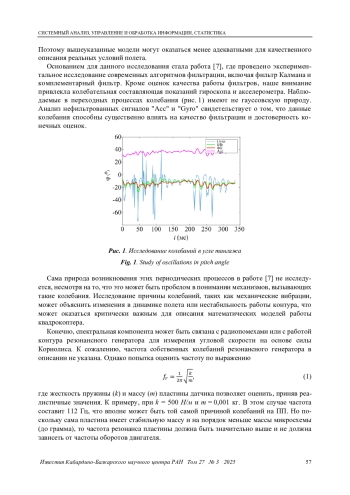 Актуальность работы заключается в том, что вибрационные помехи, возникающие вследствие работы двигателей квадрокоптера, остаются одной из ключевых причин ухудшения точности и устойчивости систем управления беспилотными летательными аппаратами. Эти помехи, вызванные переключением магнитных потоков в электродвигателях, могут существенно влиять на показания датчиков, таких как гироскопы и акселерометры, что снижает общую эффективность навигации и стабилизации. Поэтому исследование свойств таких помех и их влияния на динамику квадрокоптера является важной и практически значимой задачей.