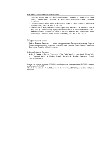 12. Сагадеев Б. А. НКВД СССР 1934—1941 гг.: структура, задачи и функции, деятельность. 3-е Управление НКО СССР (1941 г.) // Author.Today : [социальная сеть]. URL: https://author.today/reader/208404 (дата обращения: 27.04.2025).