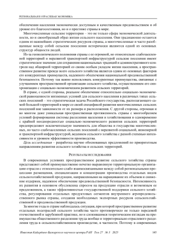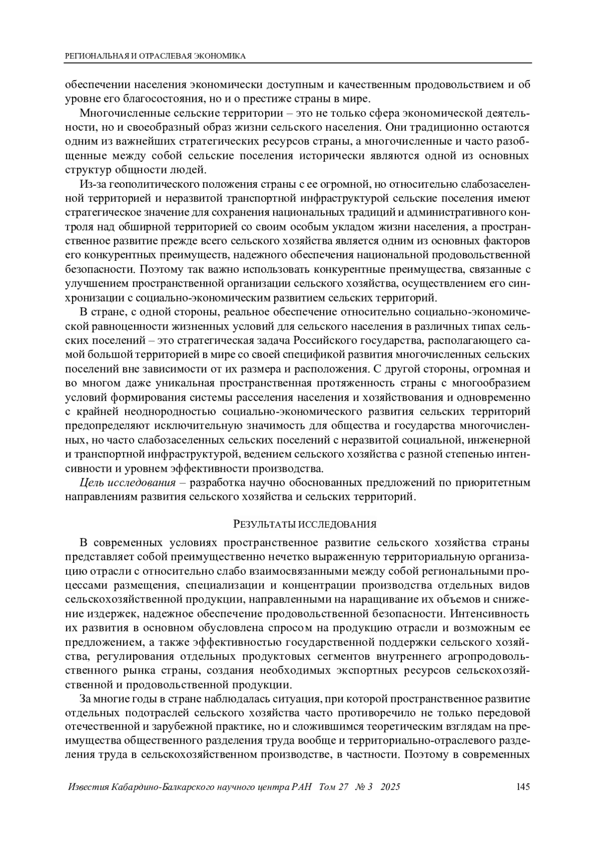 Цель исследования - разработка научно обоснованных предложений по приоритетным направлениям развития сельского хозяйства и сельских территорий.
