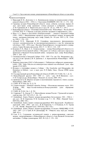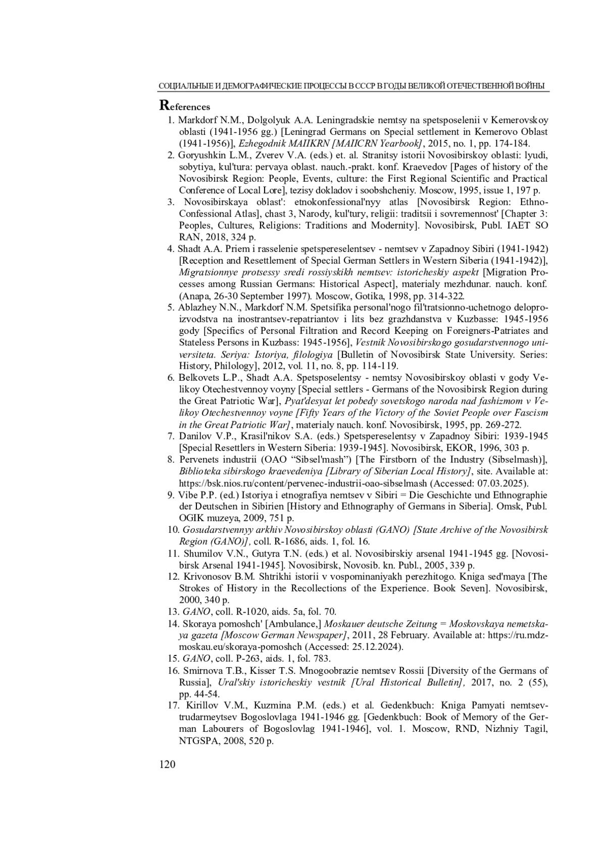 6. Белковец Л. П., Шадт А. А. Спецпоселенцы - немцы Новосибирской области в годы Великой Отечественной войны // Пятьдесят лет победы советского народа над фашизмом в Великой Отечественной войне: материалы науч. конф. Новосибирск, 1995. С. 269-272.