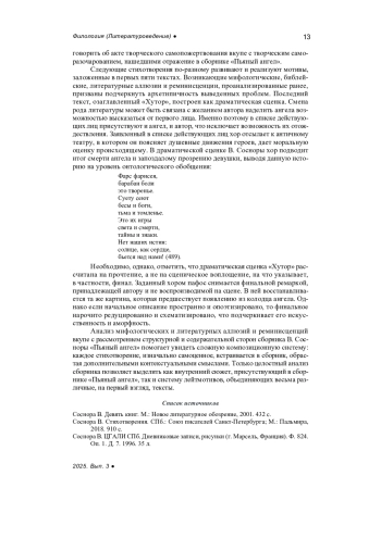 Статья: ЛИТЕРАТУРНЫЕ И МИФОЛОГИЧЕСКИЕ ИСТОЧНИКИ ПОЭТИЧЕСКИХ ТЕКСТОВ СБОРНИКА В. СОСНОРЫ «ПЬЯНЫЙ АНГЕЛ» (2025)