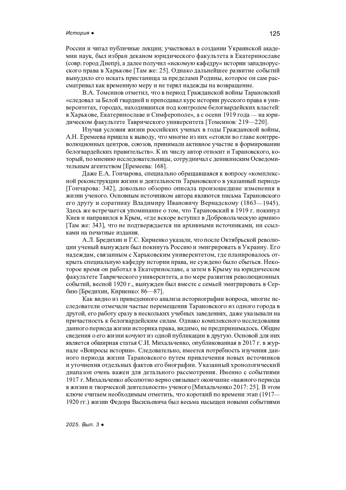 6. Михальченко С.И. Фёдор Васильевич Тарановский // Вопросы истории. 2017. № 9. С. 16-33.