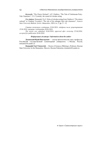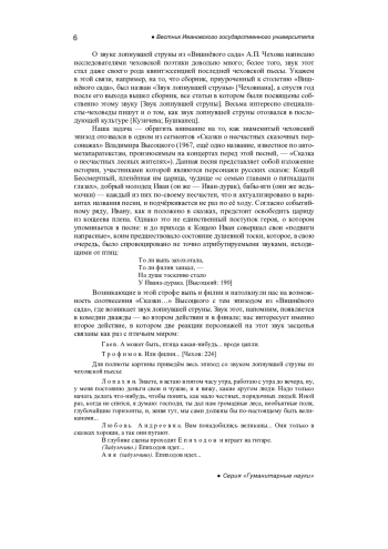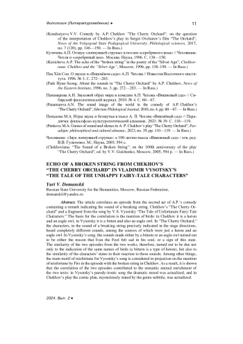 10. Панамарева А.Н. Звуковой образ мира в комедии А.П. Чехова “Вишневый сад” // Сибирский филологический журнал. 2010. № 4. С. 60-67. EDN: NCMPPH