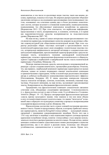 Voroshilova M.B. Creolized text in political discourse, Political linguistics, 2007, no. 23, pp. 73-78. - In Russ. EDN: JVMQWT