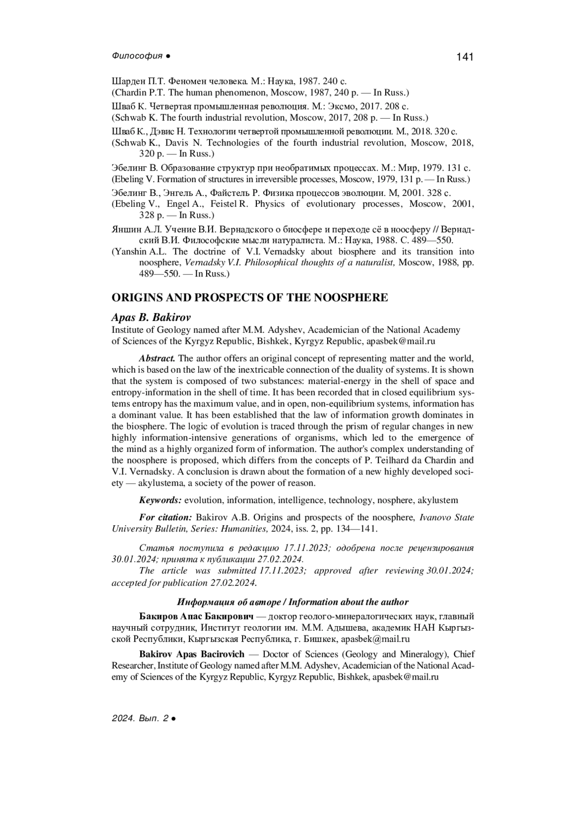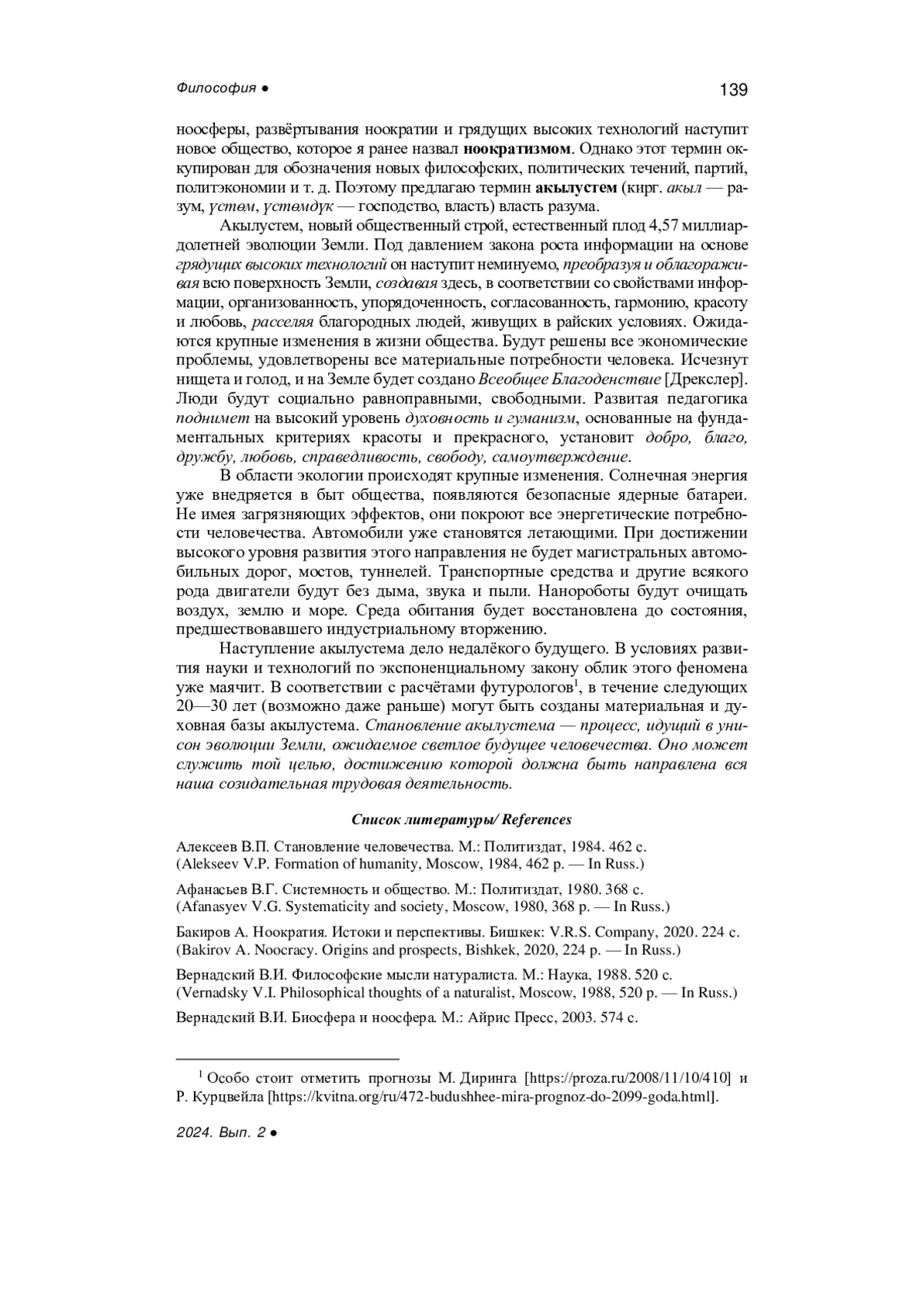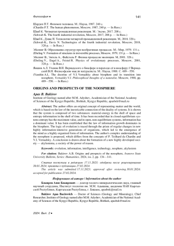 Bakirov A. Noocracy. Origins and prospects, Bishkek, 2020, 224 p. - In Russ.