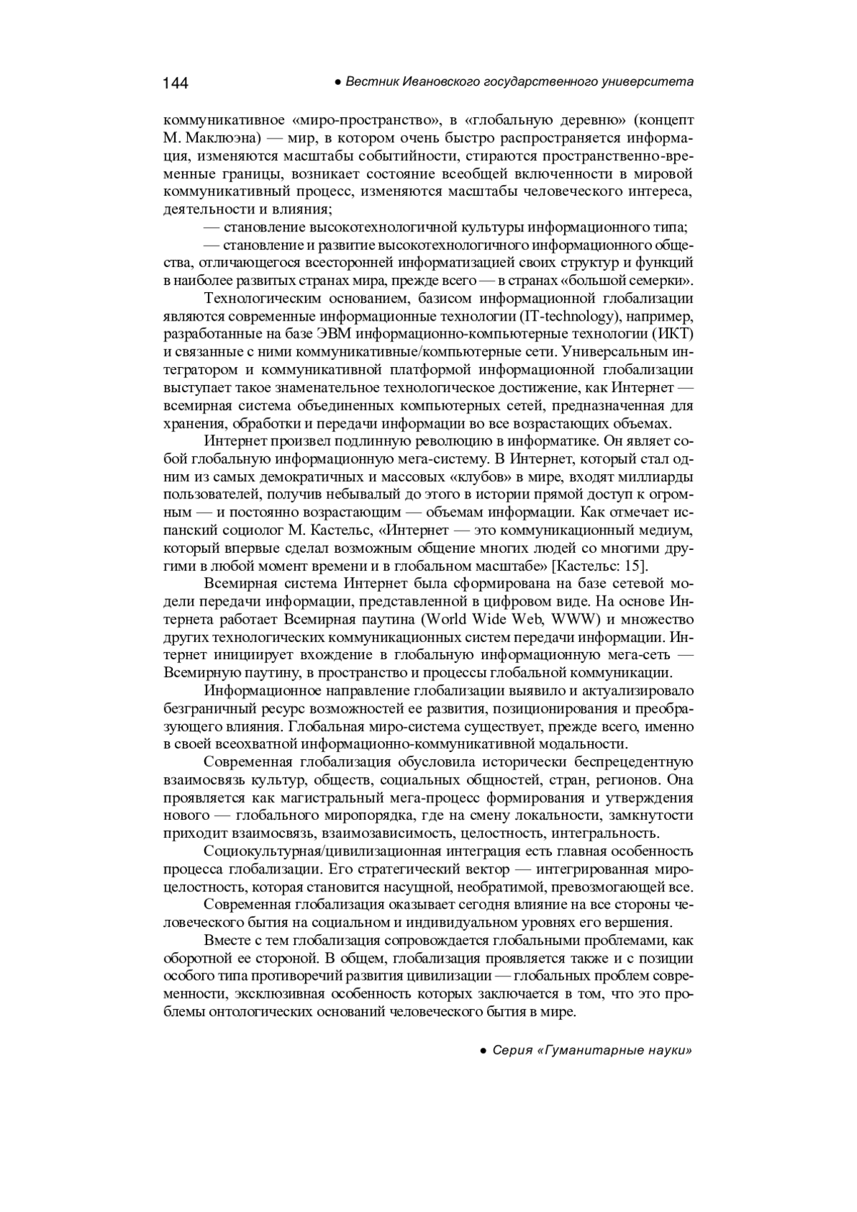 Castells M. The Internet Galaxy: Reflections on the Internet, business and society, Ekaterinburg, 2004, 328 p. - In Russ.