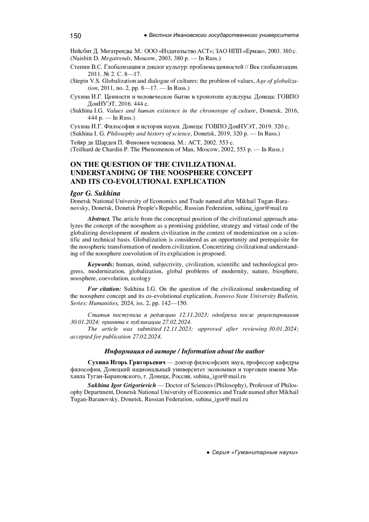 8. Сухина И.Г. Ценности и человеческое бытие в хронотопе культуры. Донецк: ГОВПО ДонНУЭТ, 2016. 444 с.