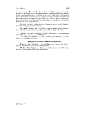 Dmitrevskaya I.V. The Noosphere as a systemically organized Universal, The Noospheric paradigm of education: from lyceum to university, Ivanovo, 1997, pp. 8-27. - In Russ.