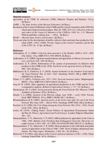 2. Андреенков С. Н. Реформирование системы заготовок колхозной продукции в СССР в 1950-е гг. / С. Н. Андреенков // Ежегодник по аграрной истории Европы. - 2014. - № 1. - С. 449-458.