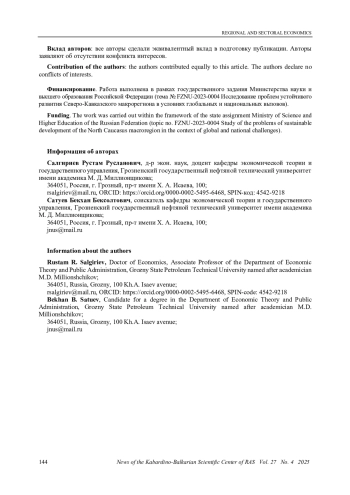 Выводы. Результаты исследования обладают высокой прикладной значимостью и могут быть использованы при разработке региональной социально-экономической политики, формировании инструментов стратегического планирования и принятия управленческих решений в условиях макроэкономической нестабильности. Построенная кластерная модель позволяет учитывать структурные различия между регионами, а выявленные взаимосвязи между показателями - формировать более точные прогнозы устойчивости. Методологический подход, использованный в исследовании, может быть масштабирован на другие группы субъектов и адаптирован к различным временным периодам для мониторинга динамики устойчивости.