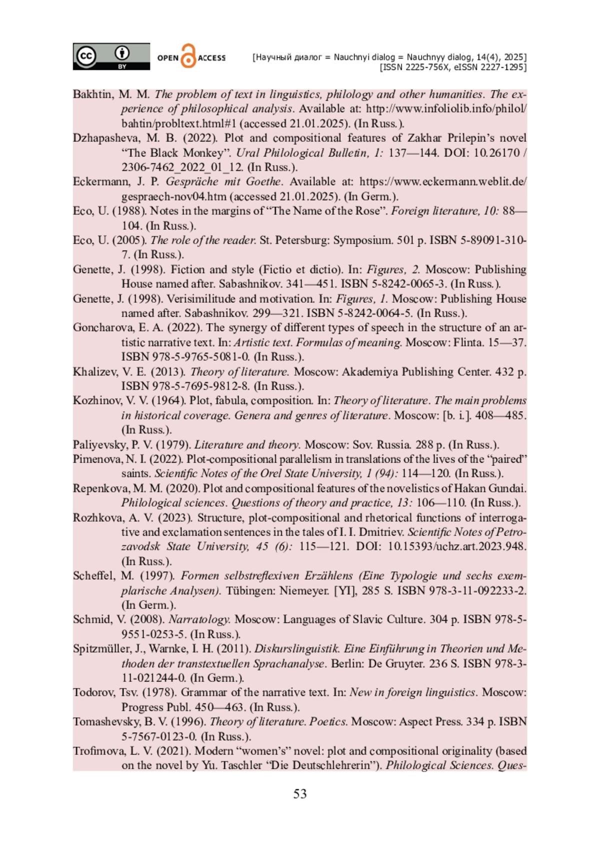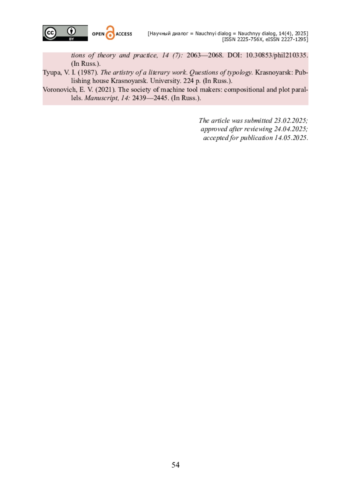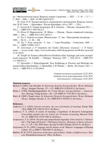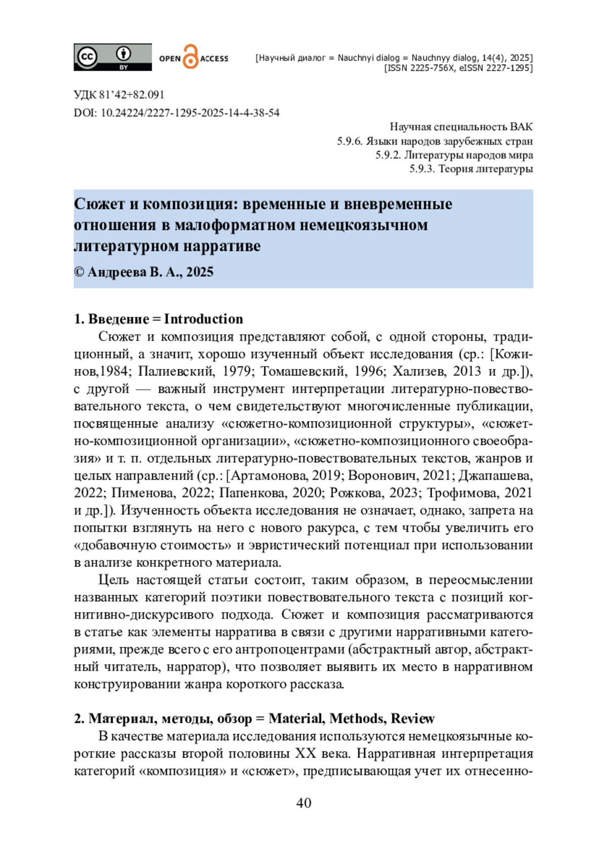 АНДРЕЕВА В. А. СЮЖЕТ И КОМПОЗИЦИЯ: ВРЕМЕННЫЕ И ВНЕВРЕМЕННЫЕ ОТНОШЕНИЯ В МАЛОФОРМАТНОМ НЕМЕЦКОЯЗЫЧНОМ ЛИТЕРАТУРНОМ НАРРАТИВЕ // НАУЧНЫЙ ДИАЛОГ. 2025. ТОМ 14, № 4