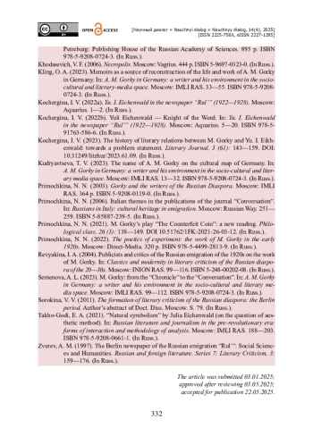 12. Семенова А. Л. М. Горький : от «Летописи» к «Беседе» / А. Л. Семенова // А. М. Горький в Германии : писатель и его окружение в социокультурном и литературно-медийном пространстве. - Москва : ИМЛИ РАН, 2023. - C. 99-112. - ISBN 978-5-9208-0724-3.