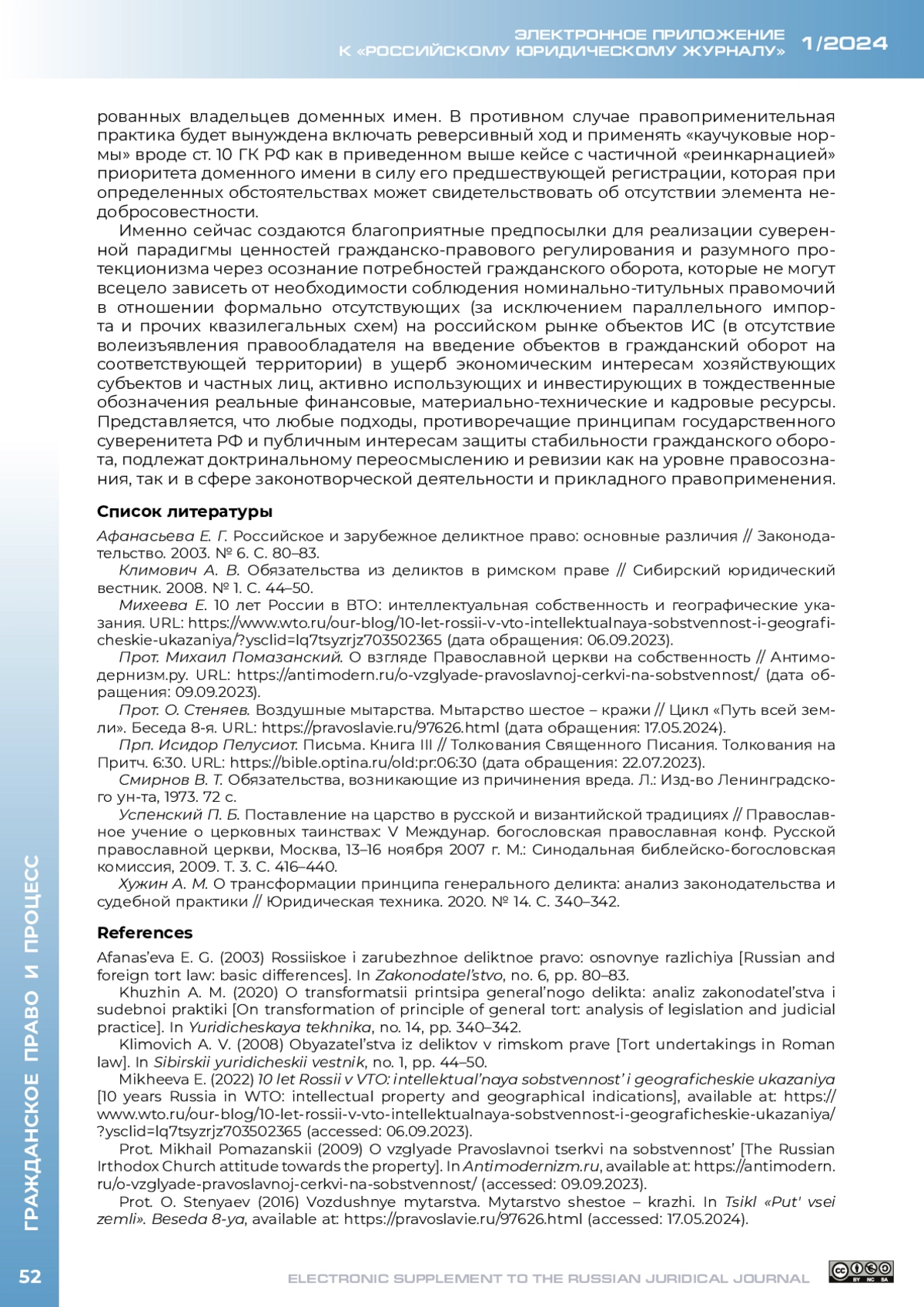 1. Афанасьева Е. Г. Российское и зарубежное деликтное право: основные различия // Законодательство. 2003. № 6. С. 80-83. EDN: XYNQQL