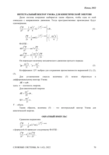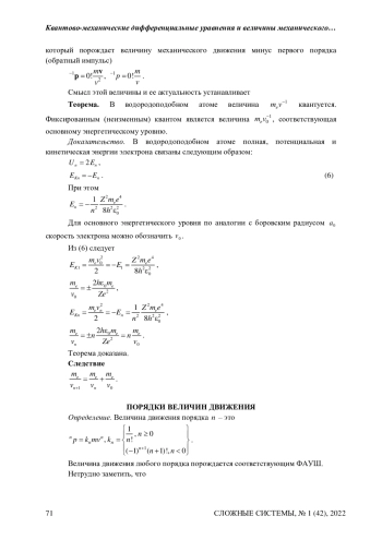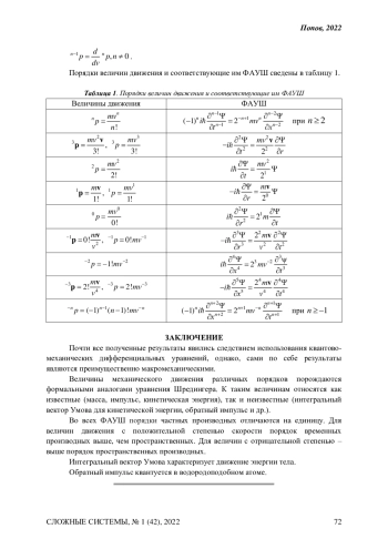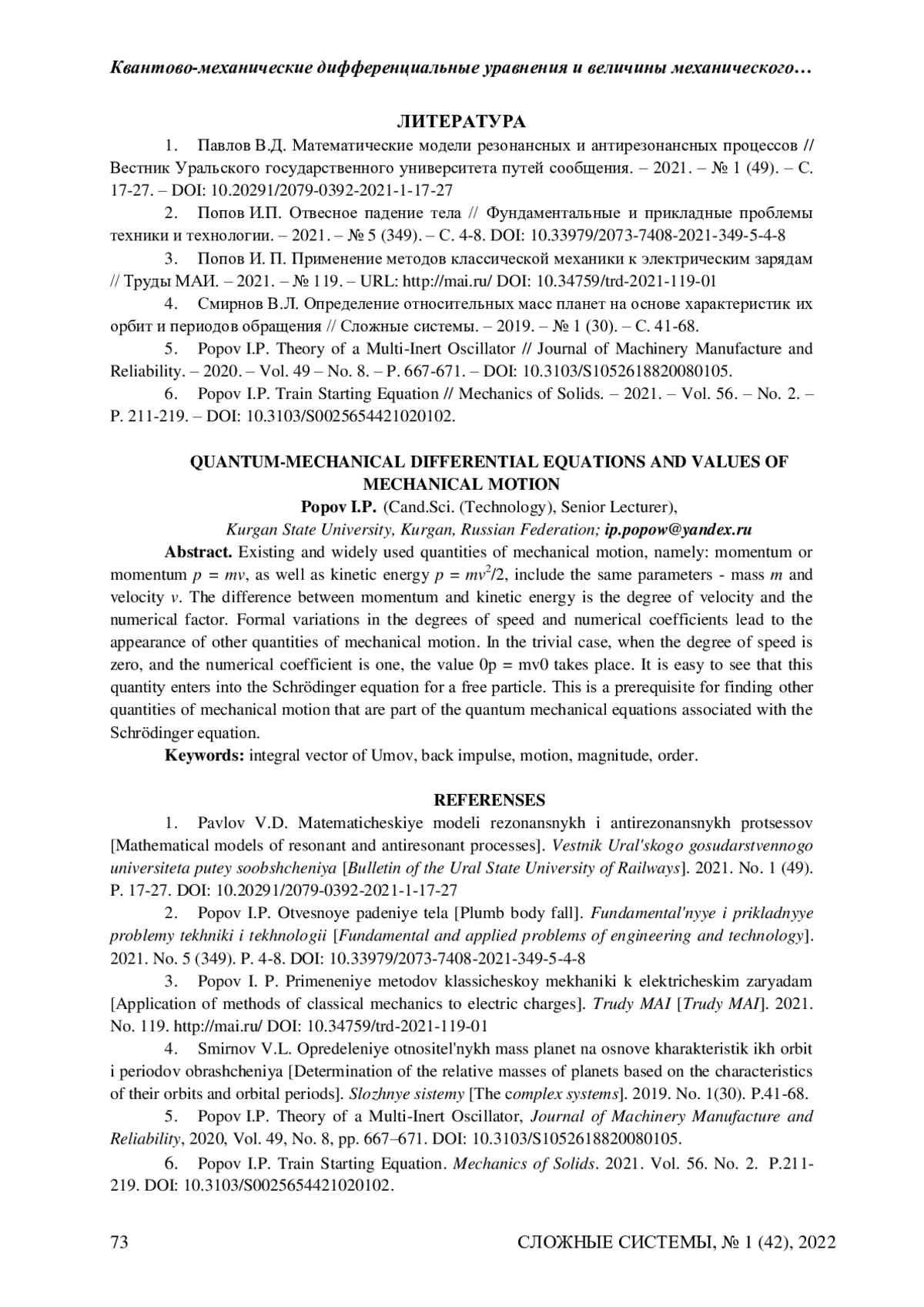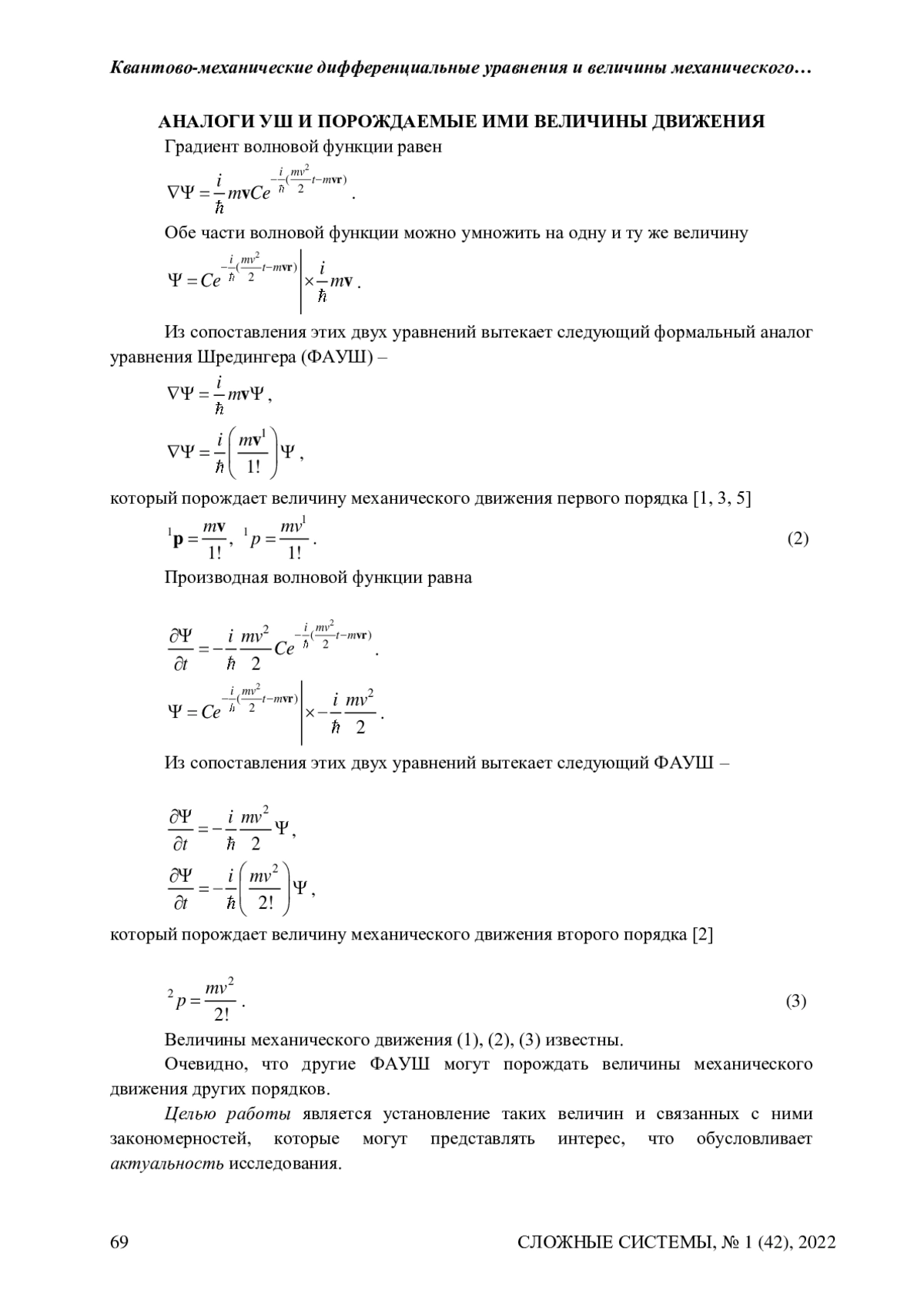 ПОПОВ И. П. КВАНТОВО-МЕХАНИЧЕСКИЕ ДИФФЕРЕНЦИАЛЬНЫЕ УРАВНЕНИЯ И ВЕЛИЧИНЫ МЕХАНИЧЕСКОГО ДВИЖЕНИЯ // СЛОЖНЫЕ СИСТЕМЫ. 2022. №1 (42)
