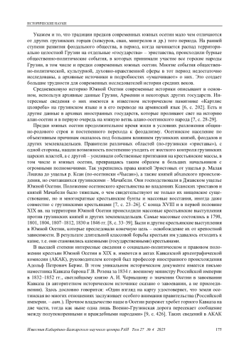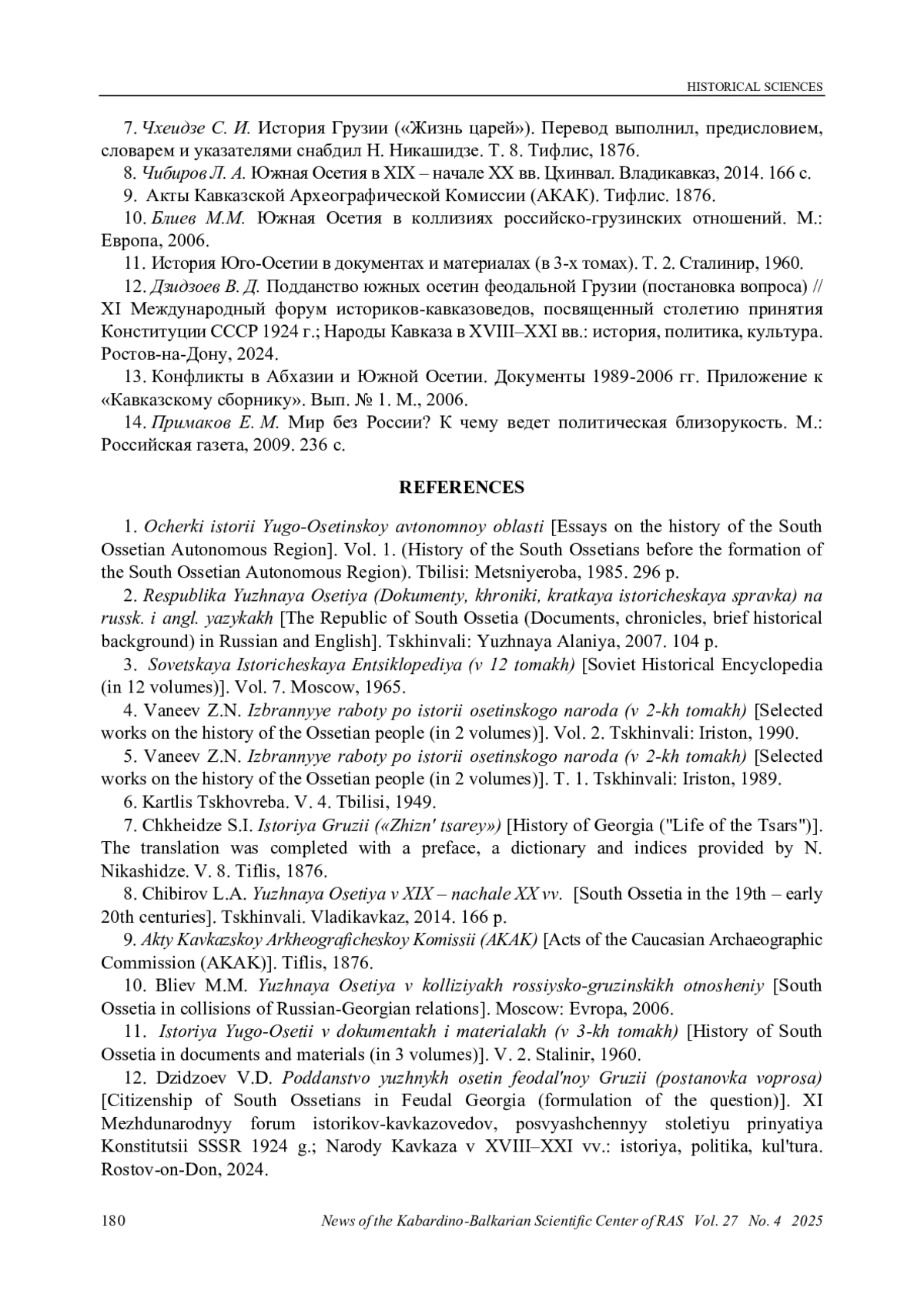 12. Дзидзоев В. Д. Подданство южных осетин феодальной Грузии (постановка вопроса) // XI Международный форум историков-кавказоведов, посвященный столетию принятия Конституции СССР 1924 г.; Народы Кавказа в ХVIII-ХХI вв.: история, политика, культура. Ростов-на-Дону, 2024. EDN: NGLHET