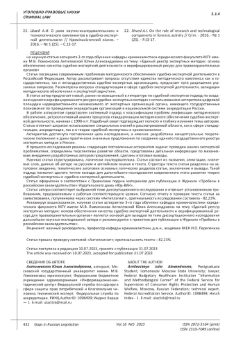 22. Швед А.И. О роли научно-исследовательского и технологического компонентов в судебно-экспертной деятельности // Кримiналiстичний вiсник. - 2016. - № 1 (25). - С.13-17.