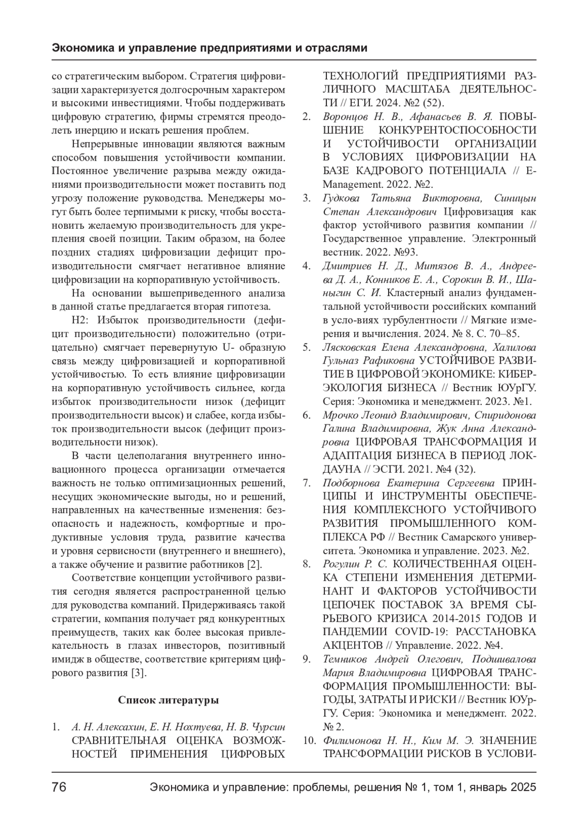 1. А. Н. Алексахин, Е. Н. Нохтуева, Н. В. Чурсин СРАВНИТЕЛЬНАЯ ОЦЕНКА ВОЗМОЖНОСТЕЙ ПРИМЕНЕНИЯ ЦИФРОВЫХ ТЕХНОЛОГИЙ ПРЕДПРИЯТИЯМИ РАЗЛИЧНОГО МАСШТАБА ДЕЯТЕЛЬНОСТИ // ЕГИ. 2024. №2 (52).