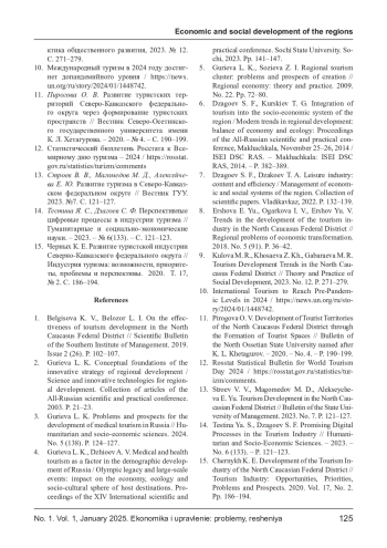8. Ершова Е. Ю., Огаркова И. В., Ершов Ю. В. Тенденции развития индустрии туризма в Северо-Кавказском федеральном округе // Региональные проблемы преобразования экономики. 2018. № 5 (91). С. 36-42. EDN: XULEDZ
