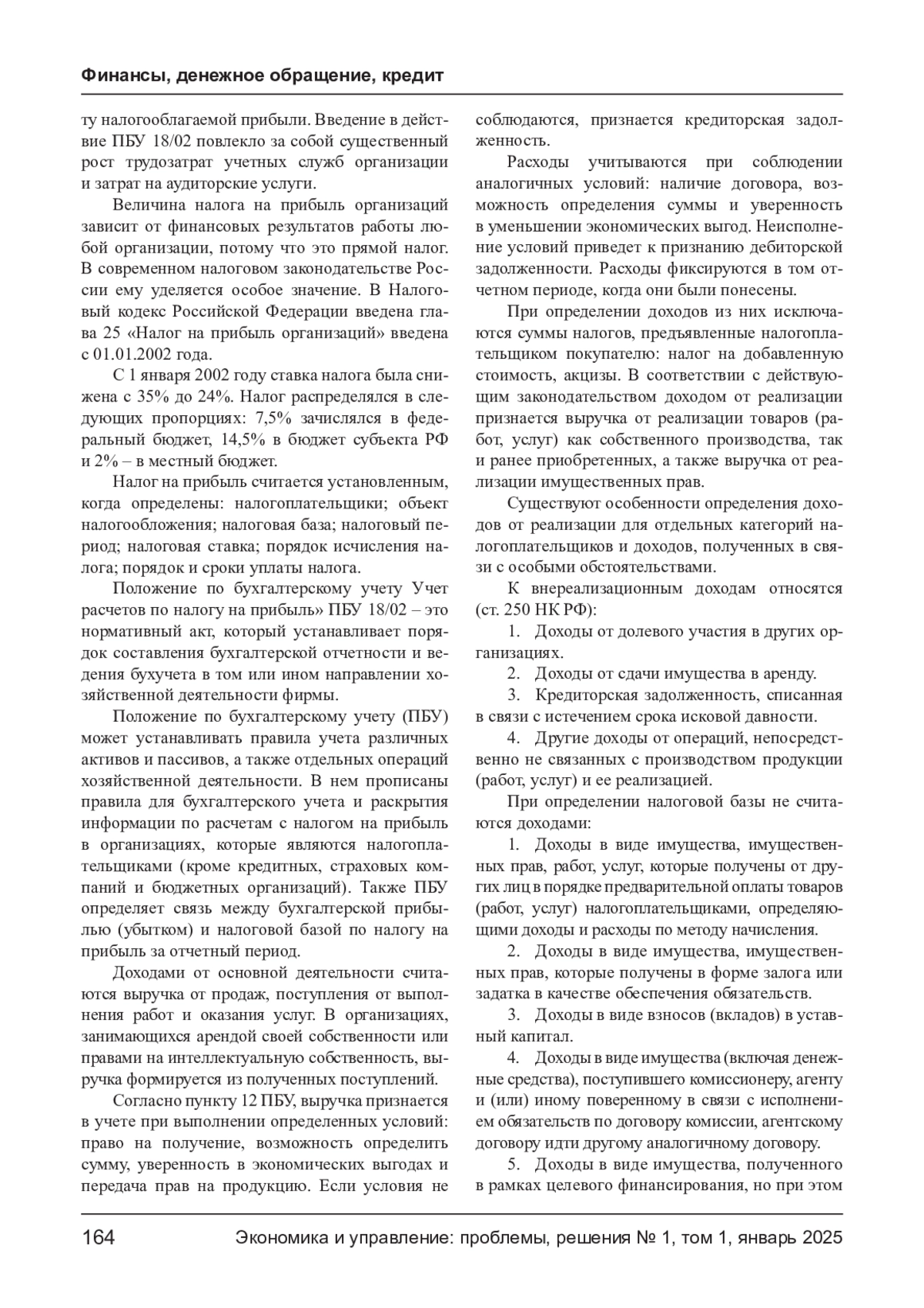 Прибыль является ключевым экономическим показателем, который отражает успешные финансовые результаты работы предприятия. В статье охарактеризованы принципы управления прибылью организации. Представлено как формируется прибыль от основной деятельности и внереализационной и финансовой деятельности. На первом этапе рассмотрены законы, регулирующие бухгалтерский учет и налоговый учет, налог на прибыль. Проведен анализ структуры получаемых доходов и осуществляемых расходов. На следующем этапе рассмотрели порядок установления налогов и прибыли, в частности. Рассмотрели Положение по бухгалтерскому учету «Учет расчетов по налогу на прибыль» ПБУ 18/02 и нововведения по налогу на прибыль в 2025 году.
