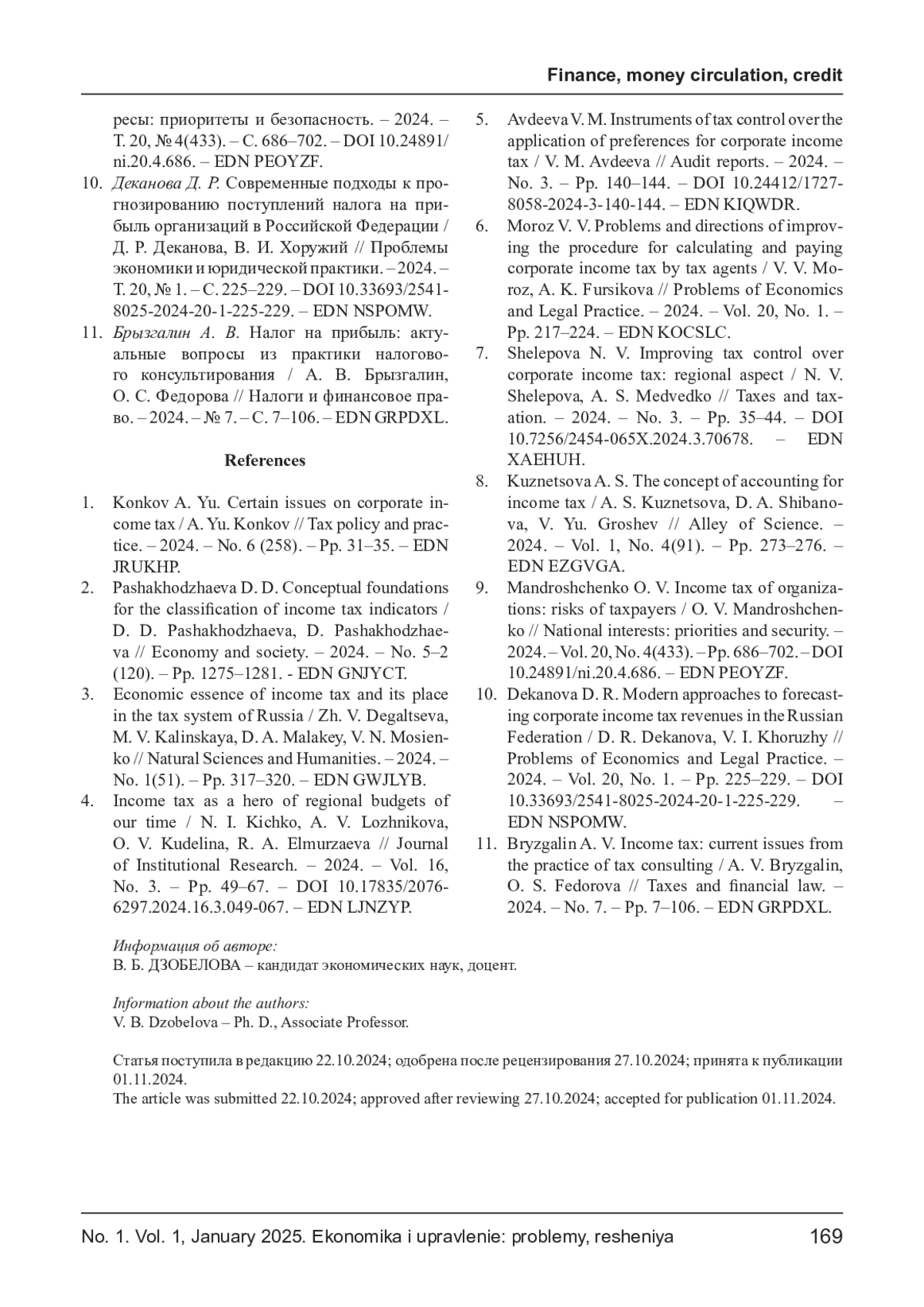9. Мандрощенко О. В. Налог на прибыль организаций: риски налогоплательщиков / О. В. Мандрощенко // Национальные интересы: приоритеты и безопасность. - 2024. - Т. 20, № 4(433). - С. 686-702. 10.24891/ ni.20.4.686. DOI: 10.24891/ni.20.4.686 EDN: PEOYZF