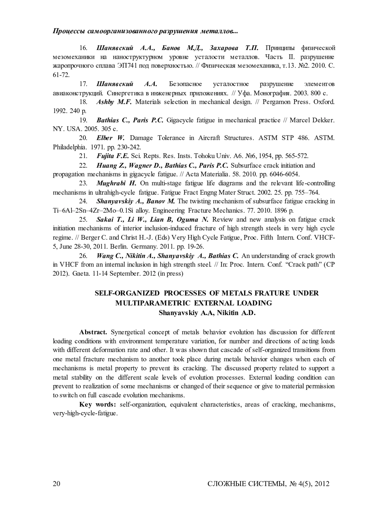 Статья: ПРОЦЕССЫ САМООРГАНИЗОВАННОГО РАЗРУШЕНИЯ МЕТАЛЛОВ ПРИМНОГОПАРАМЕТРИЧЕСКОМ НАГРУЖЕНИИ (2012)