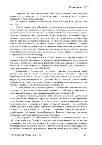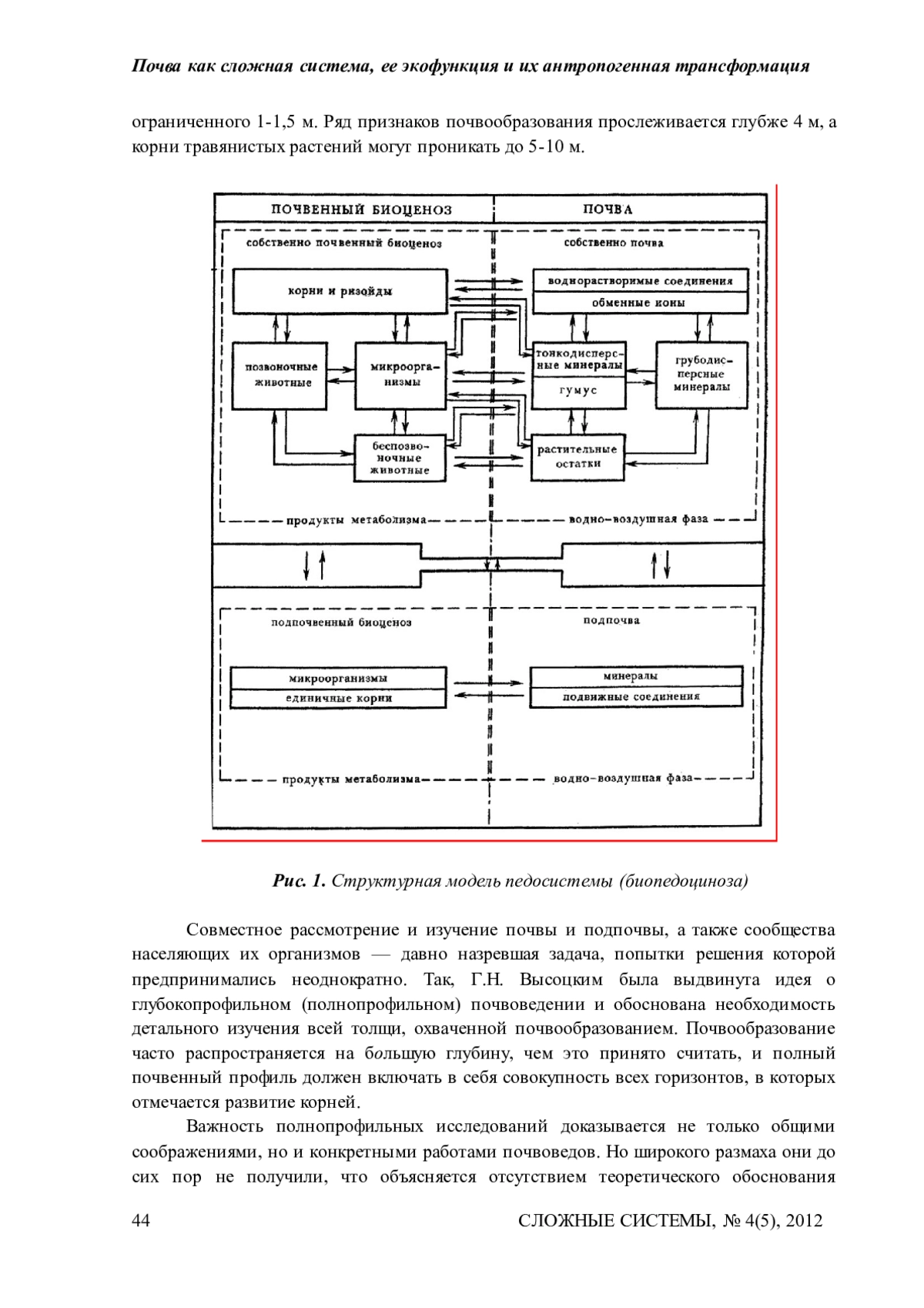 НИКИТИН Е. Д., САБОДИНА Е. П., ИВАНОВ О. П., ВИТЯЗЕВ В. Г. ПОЧВА КАК СЛОЖНАЯ СИСТЕМА, ЕЁ ЭКОФУНКЦИИ И ИХ АНТРОПОГЕННАЯ ТРАНСФОРМАЦИЯ // СЛОЖНЫЕ СИСТЕМЫ. 2012. №4 (5)