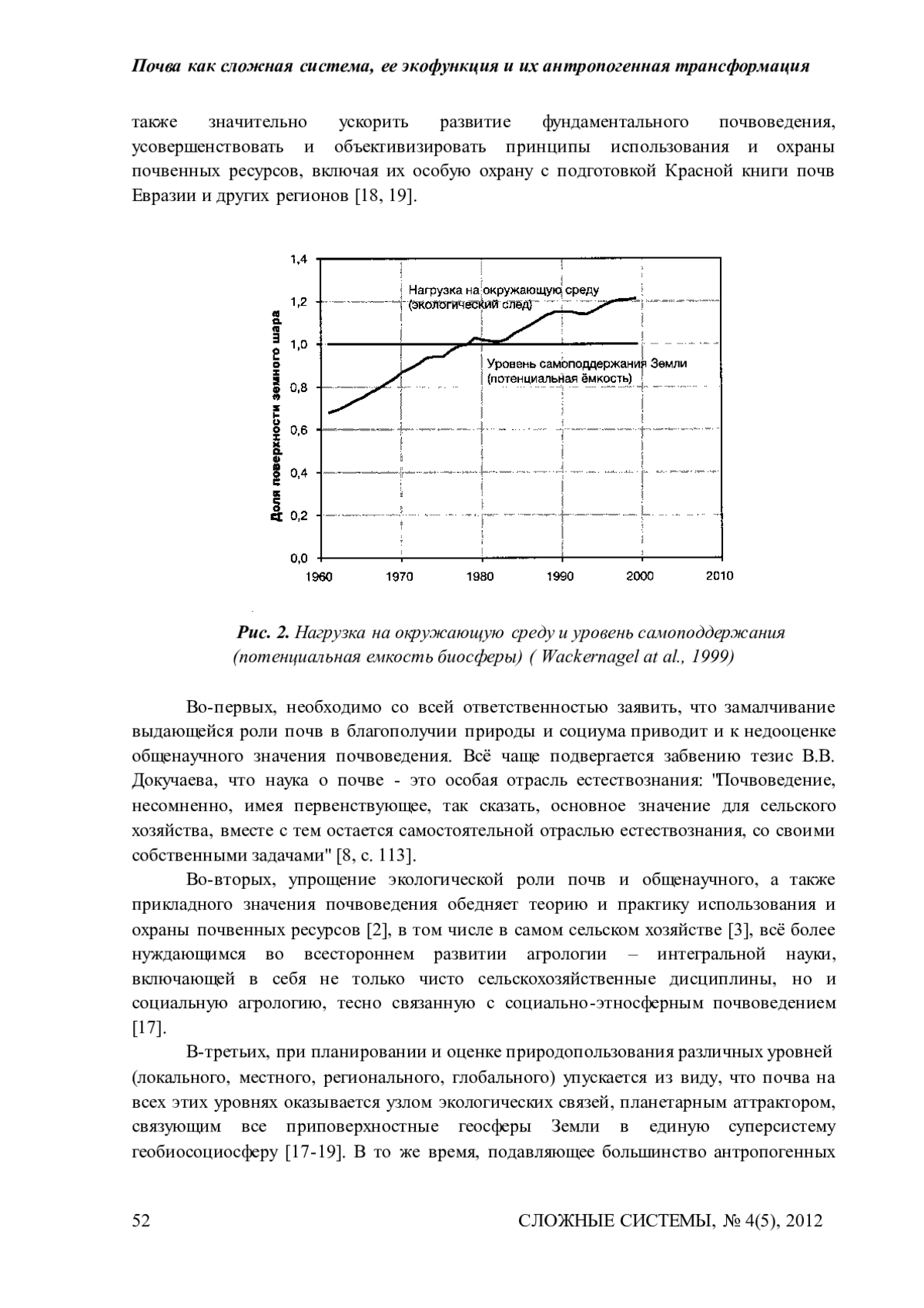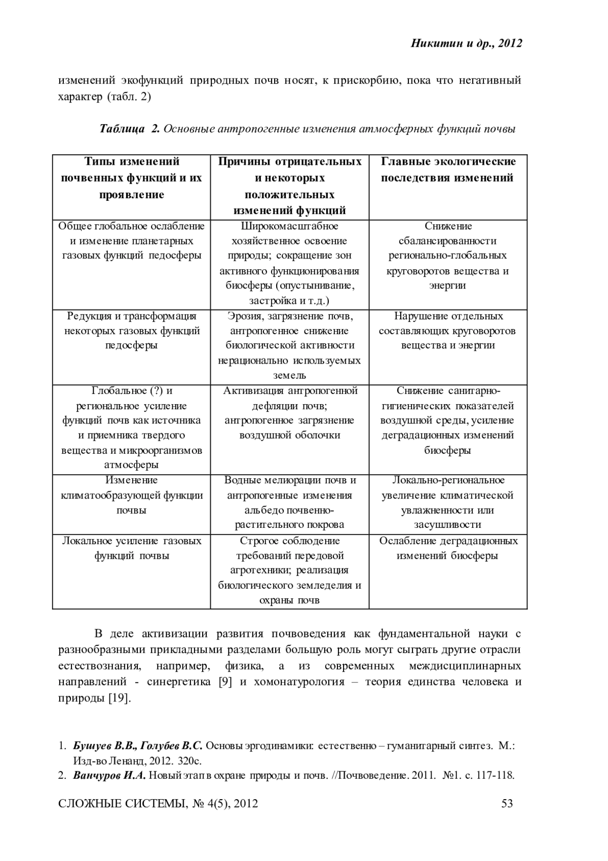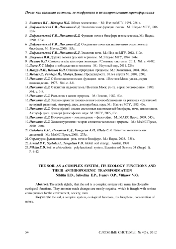 Статья: ПОЧВА КАК СЛОЖНАЯ СИСТЕМА, ЕЁ ЭКОФУНКЦИИ И ИХ АНТРОПОГЕННАЯ ТРАНСФОРМАЦИЯ (2012)