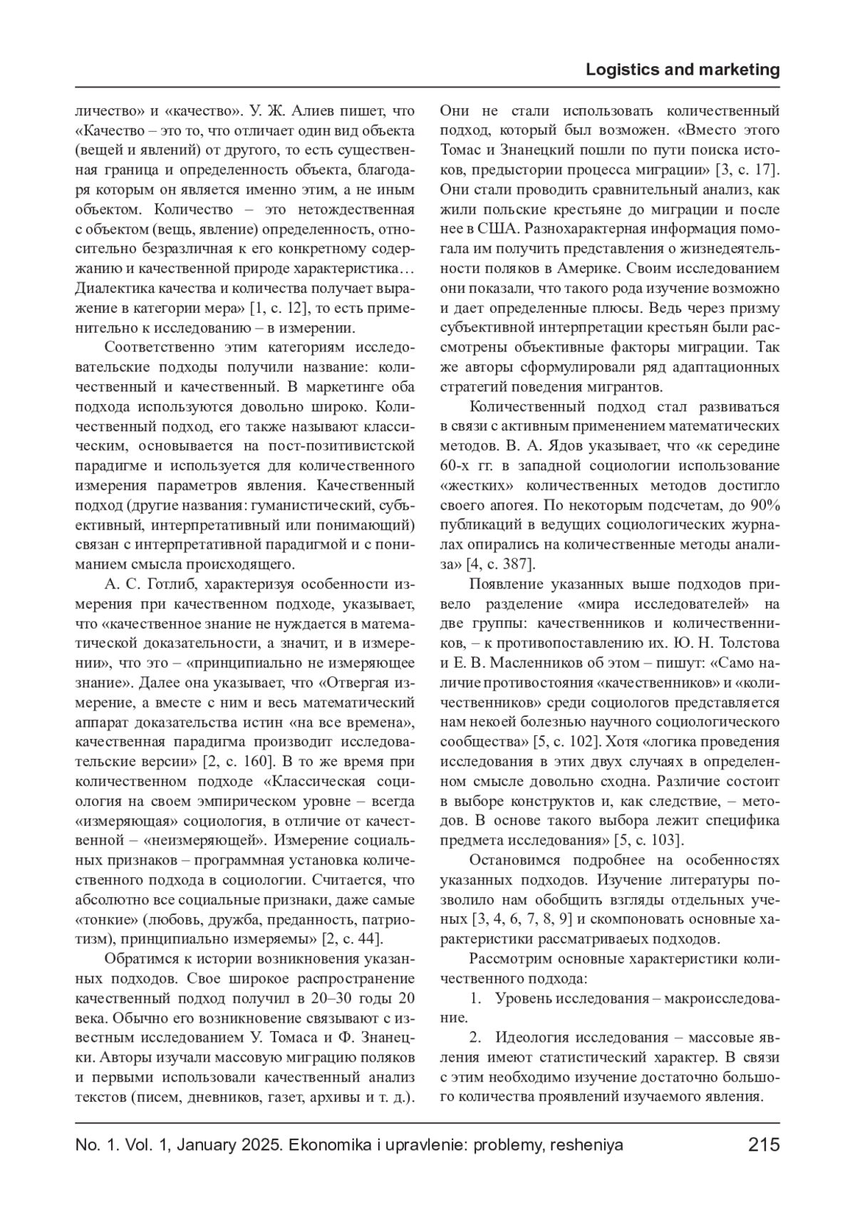 1. Алиев У. Ж. Диалектика количественного и качественного в социально-экономических исследованиях //Теоретическая экономика“. 2019. № 12. С. 11-18. EDN: DXZHTL