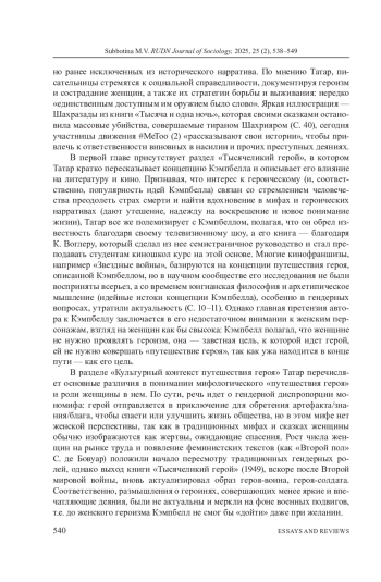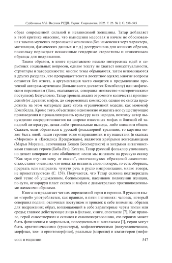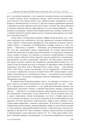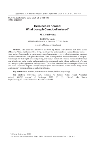 Статья представляет собой рецензию на книгу М. Татар «Тысячеликая героиня: Женский архетип в мифологии и литературе» (М.: Альпина Паблишер, 2024. 453 с.), в которой автор анализирует разные литературные произведения - от древнегреческих мифов до современных комиксов, чтобы выяснить, какими архетипами представлены женские персонажи и какое место в культуре они занимают. Татар проводит параллели между героинями прошлого, которые боролись за свои права с помощью сказительства, и современными женщинами, предающими огласке истории о насилии и несправедливости; освещает проблему молчания как социального феномена и рассматривает слова как оружие борьбы с угнетением и угнетателями. В рецензии освещены как сильные стороны текста, так и упомянутые в нем темы, требующие более глубокого анализа (например, трансформация женского образа в современной массовой культуре, которая пришла на смену фольклору).